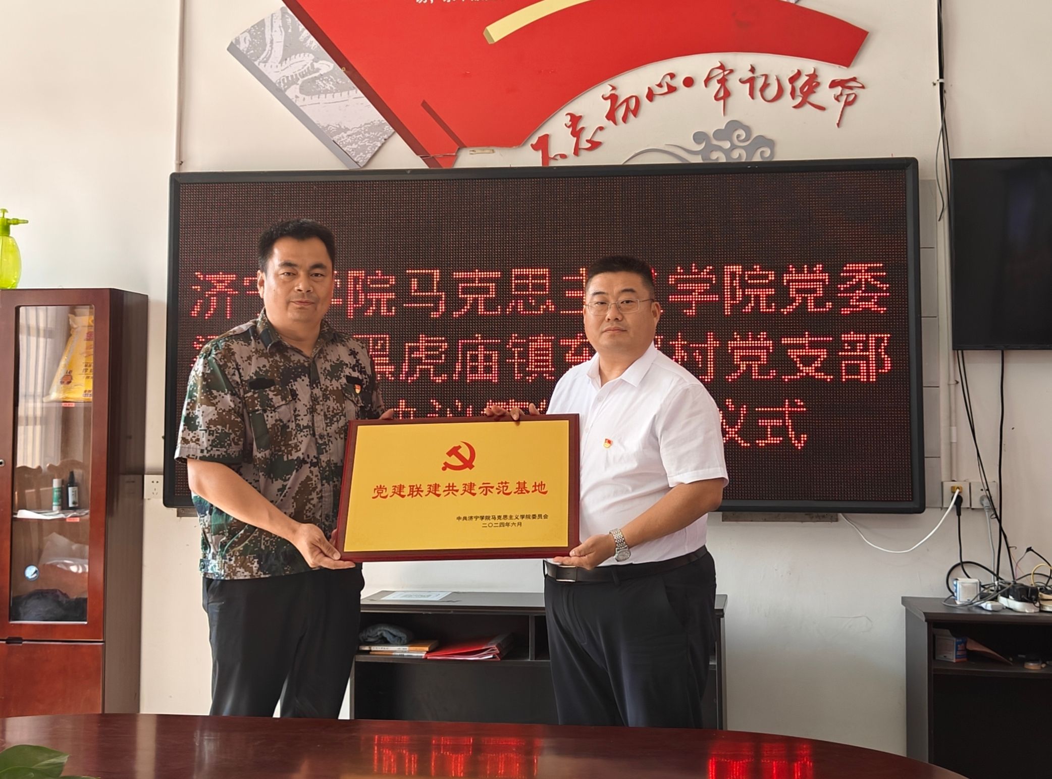 会上,马克思主义学院教工党支部和学生党支部分别与黑虎庙镇东郭村党支部签订了党建共建协议,并举行了授牌仪式。