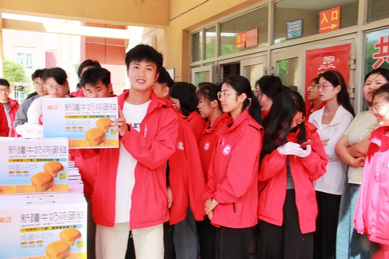 齐伟一行首先来到实验中学宿舍楼看望支教团师生,向支教团师生送上节日礼品,一箱箱端午礼盒,包裹着飘香的粽子和当地的特产,寄托着团圆和安康的美好寓意。