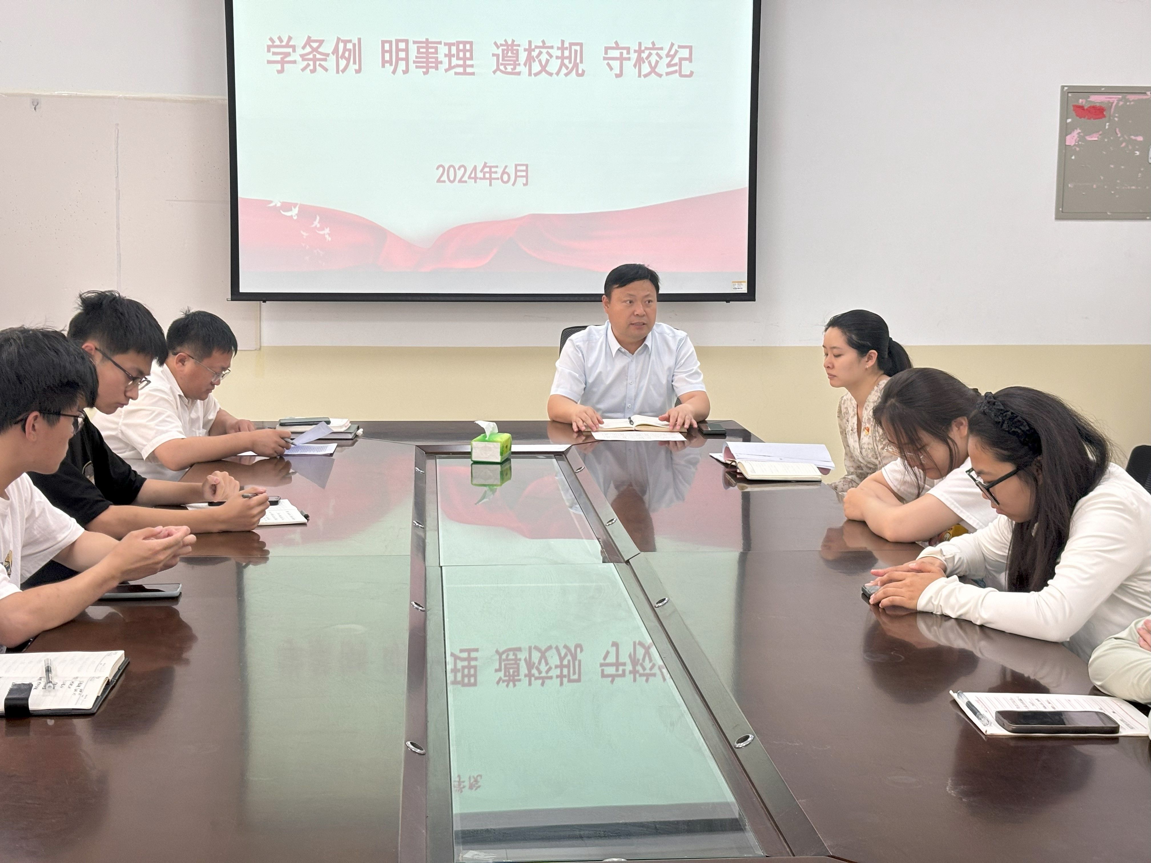 郝鹏要求大家要联系自身实际认真学习《中国共产党纪律处分条例》,自觉将条例作为生活和工作中时刻存在的准绳,让党的纪律真正转化为日常习惯并自觉遵循。要自觉遵守校规校纪,规范自身言行举止,将校规校纪内化于心,外化于行,共筑文明校园。