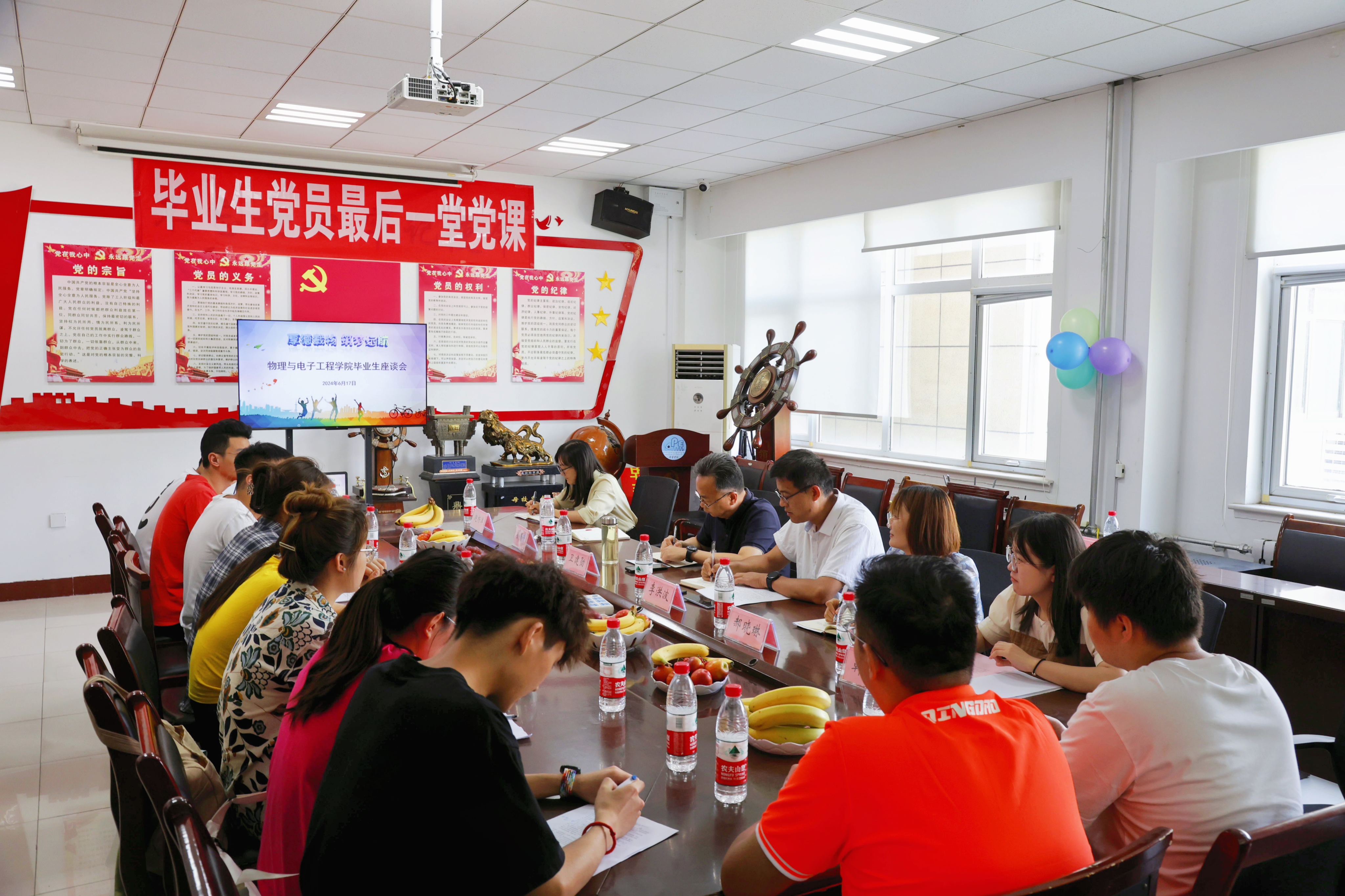为进一步做好毕业生文明离校工作,6月17日,物理与电子工程学院在9号楼二楼党员活动室开展2024届毕业生座谈会暨毕业生党员最后一堂党课。学院党委书记卫建勋、党委副书记李洪波、学术副院长翟倩倩、全体辅导员及20名本专科生代表参加会议。会议由李洪波主持。