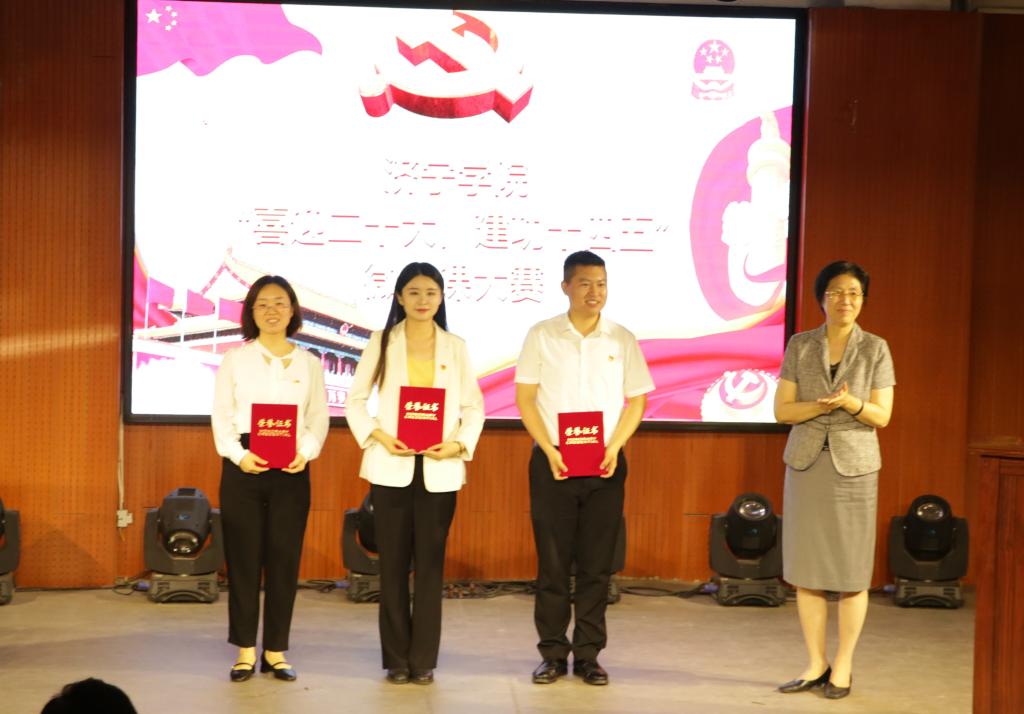 经各党委(党总支)推荐,学校初选,共有15名优秀微党课参赛选手脱颖而出,进入决赛。决赛中,参赛选手围绕“喜迎二十大、建功‘十四五’”主题,结合政治理论、百年党史、先模事迹和学校具体工作实际等为大家呈现了一堂堂精彩的党课。经过激烈角逐,马克思主义学院付茹雪、人文与传播学院孟冬梅、化学化工与材料学院魏子贺获得一等奖,孙潇等5名同志获得二等奖,王慧等7名同志获得三等奖。评委颜景虎教授对参赛微党课作品进行了点评。下一步,学校择优推荐参加济宁市微党课大赛。