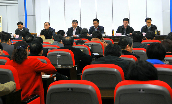 3月12日下午,我校2015年工作会议在行政楼C301召开。校党委书记郁章玉、院长吕灵昌、副院长刘德胜、朱松涛、张德芳、纪委书记许记中出席会议。郁章玉主持会议并讲话。