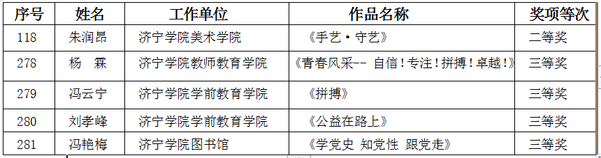 近日,山东省教育厅开展的“奋进新征程 建功新时代”主题书画摄影大赛评审结果揭晓,我校教师在本次活动中斩获佳绩,共有12项作品获奖,其中一等奖2项,二等奖3项,三等奖7项。
