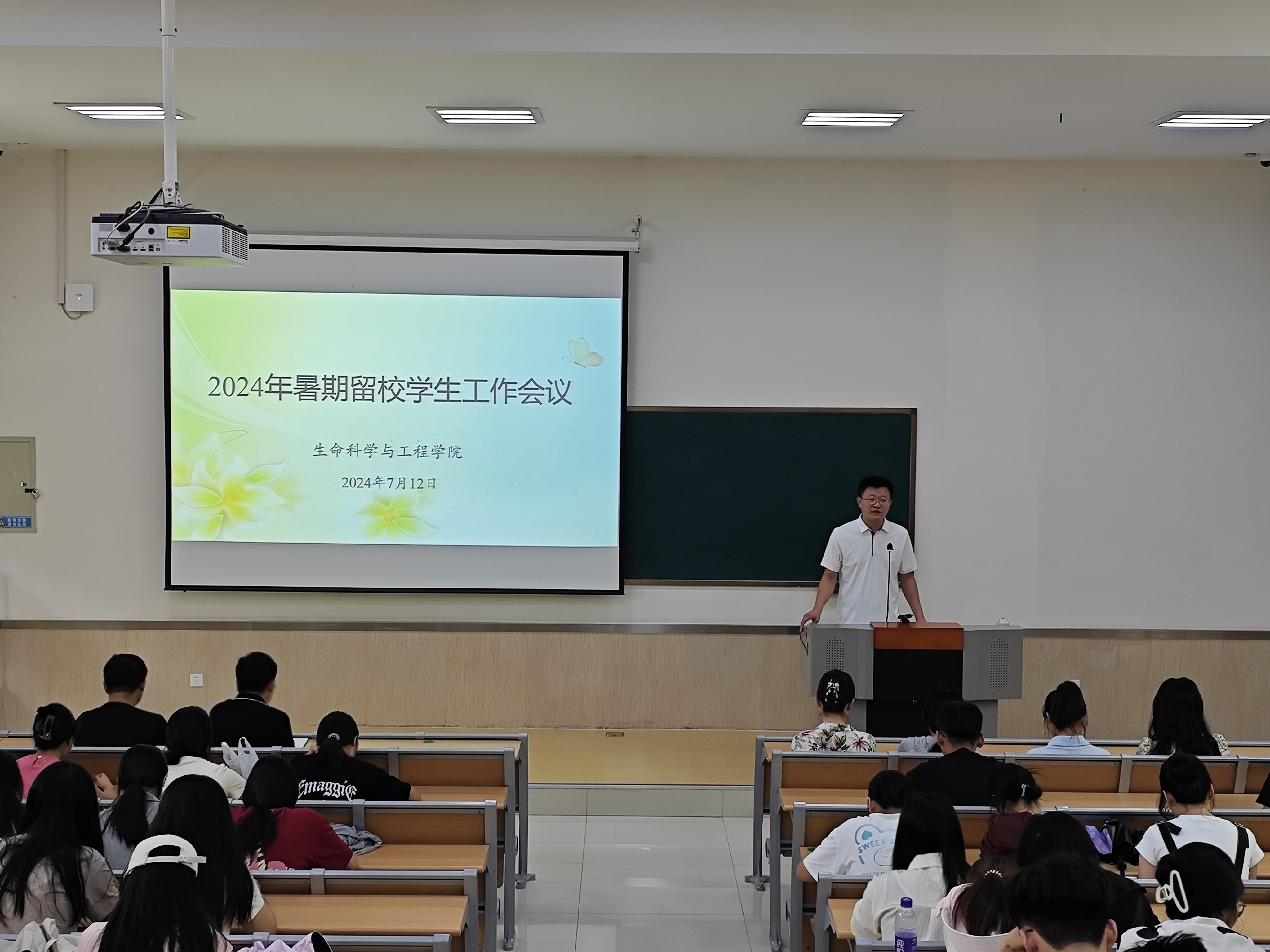 为进一步做好暑期留校学生工作,切实保障同学们的暑期留校安全,7月12日上午,生命科学与工程学院在9号楼D201教室通过线上线下相结合的方式召开暑期留校学生工作会议。该院党委副书记刘开伟、团委书记刘学文、教学科研办公室主任王晓强、全体辅导员和2024年暑期留校学生参加会议。会议由辅导员董洪秀主持。