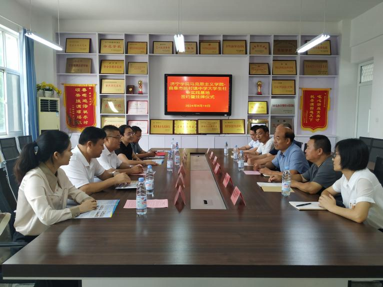 双方签署了共建大中小学思政课一体化联盟协议、共建产业学院合作协议,李效民向曲阜市姚村镇中学赠送了马克思主义学院的文创作品《止于至善》。