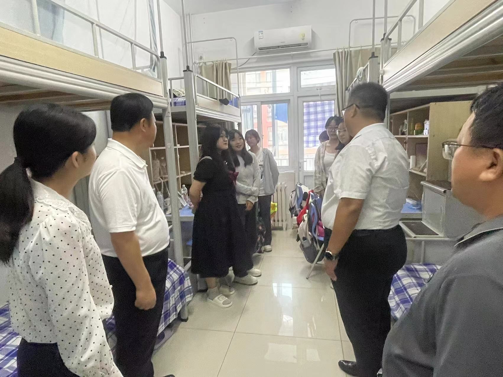 学院领导逐一走访了新生宿舍,每到一处,老师们首先对新同学们的到来表示热烈欢迎,并详细询问他们的生活适应情况、学习需求以及对未来大学生活的规划和期望,成功拉近了师生之间的距离,也让初来乍到的新生感受到了学院大家庭的温暖。