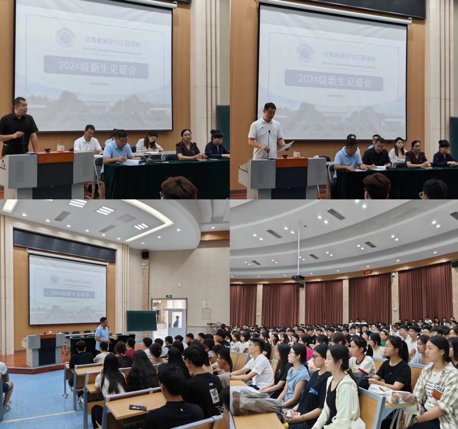 为深入贯彻落实“三全育人”工作,扎实稳健地推进学生思想政治教育,引领新生顺利开启人生新篇章。9月8日,计算机科学与工程学院在8B103召开新生见面会,计算机科学与工程学院党委副书记张颖,院长、党委副书记刘军,副院长杜永生,教学科研办公室主任陆璐,团委副书记王都以及2024级新生辅导员卓硕硕、付洁老师出席见面会,2024级576名新生以及32名助理班主任参加。本次会议由学院党委副书记冯秉政主持。