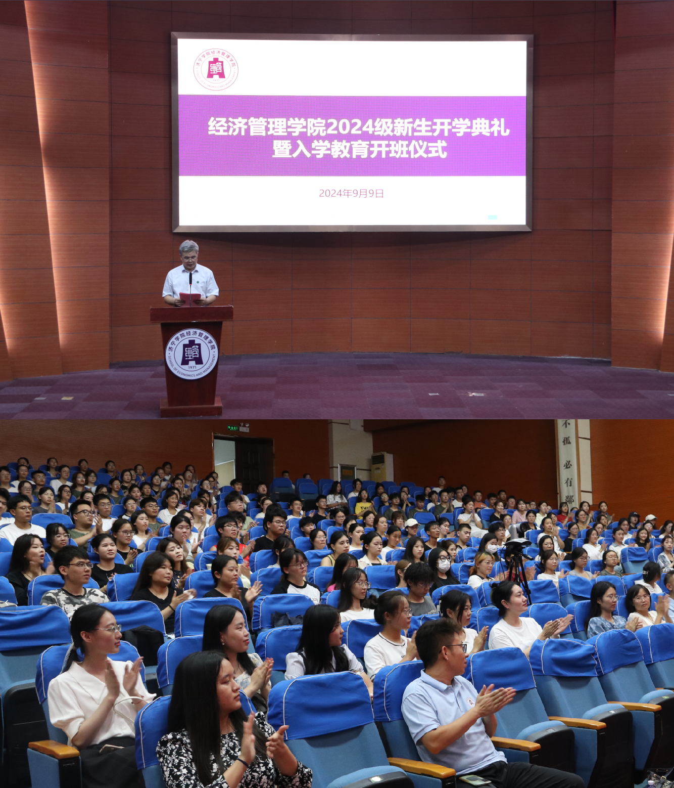 9月9日晚,经济管理学院2024级新生开学典礼暨入学教育开班仪式在理科楼报告厅及11个直播分会场同步举行。学院党委书记乔东华、院长霍雨慧、专业教师代表、全体辅导员和1003名新生参加活动。仪式由学院团委书记袁芬主持。