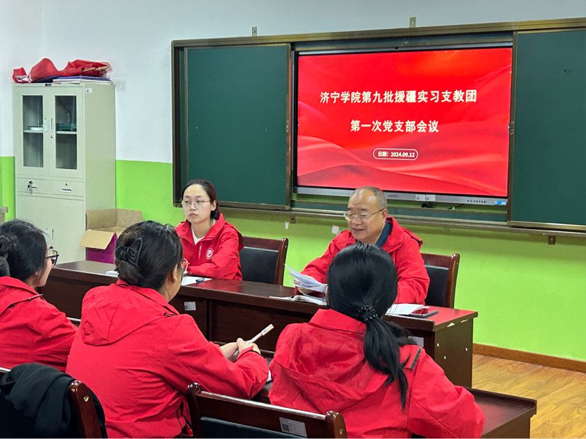 9月12日,我校第九批援疆实习支教团在会议室召开第一次党支部会议。临时党支部书记孙跃朋主持会议并讲话,支教团全体师生党员参加会议。