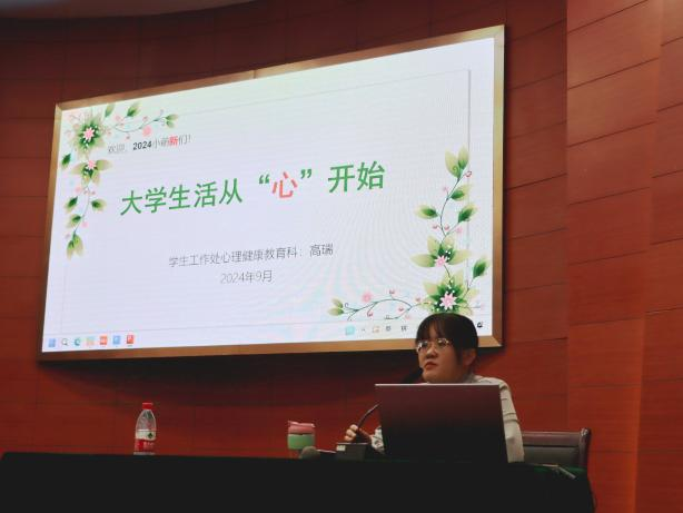 高瑞以小故事的形式为同学们生动描述了步入大学生活的心理变化,提出相应心理问题的具体解决方法。她用详实的数据、典型的案例为同学们讲述了心理健康的重要意义,强调了大学阶段是人生心理健康建设的关键时期,同学们要学会自我管理和情绪调节,提高健康水平,促进德智体美全面发展。