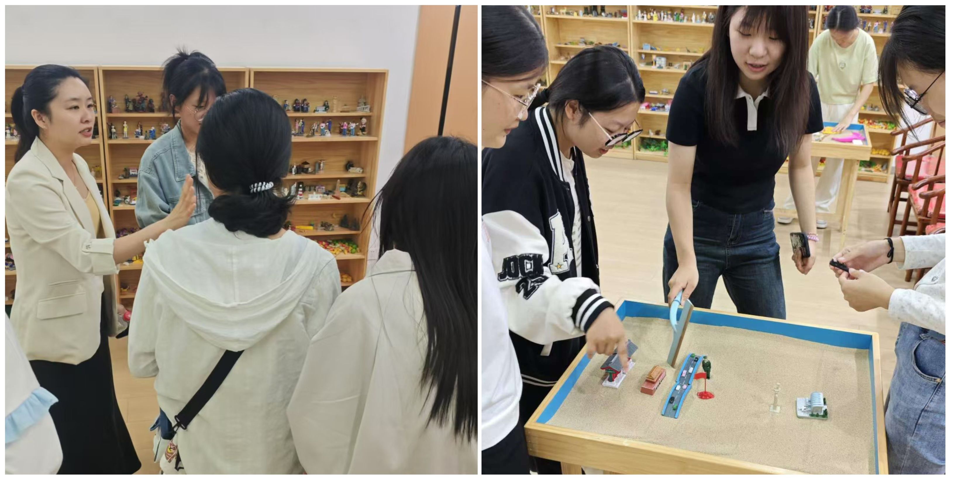 随后,大家来到沙盘游戏区。一盘细沙,各种小摆件,同学们发挥自己的想象力和创造力,用心布置着属于自己的小小世界。在这个过程中,同学们不仅释放了压力,还通过与老师和同学的交流,对自己的内心世界有了更深入的了解。