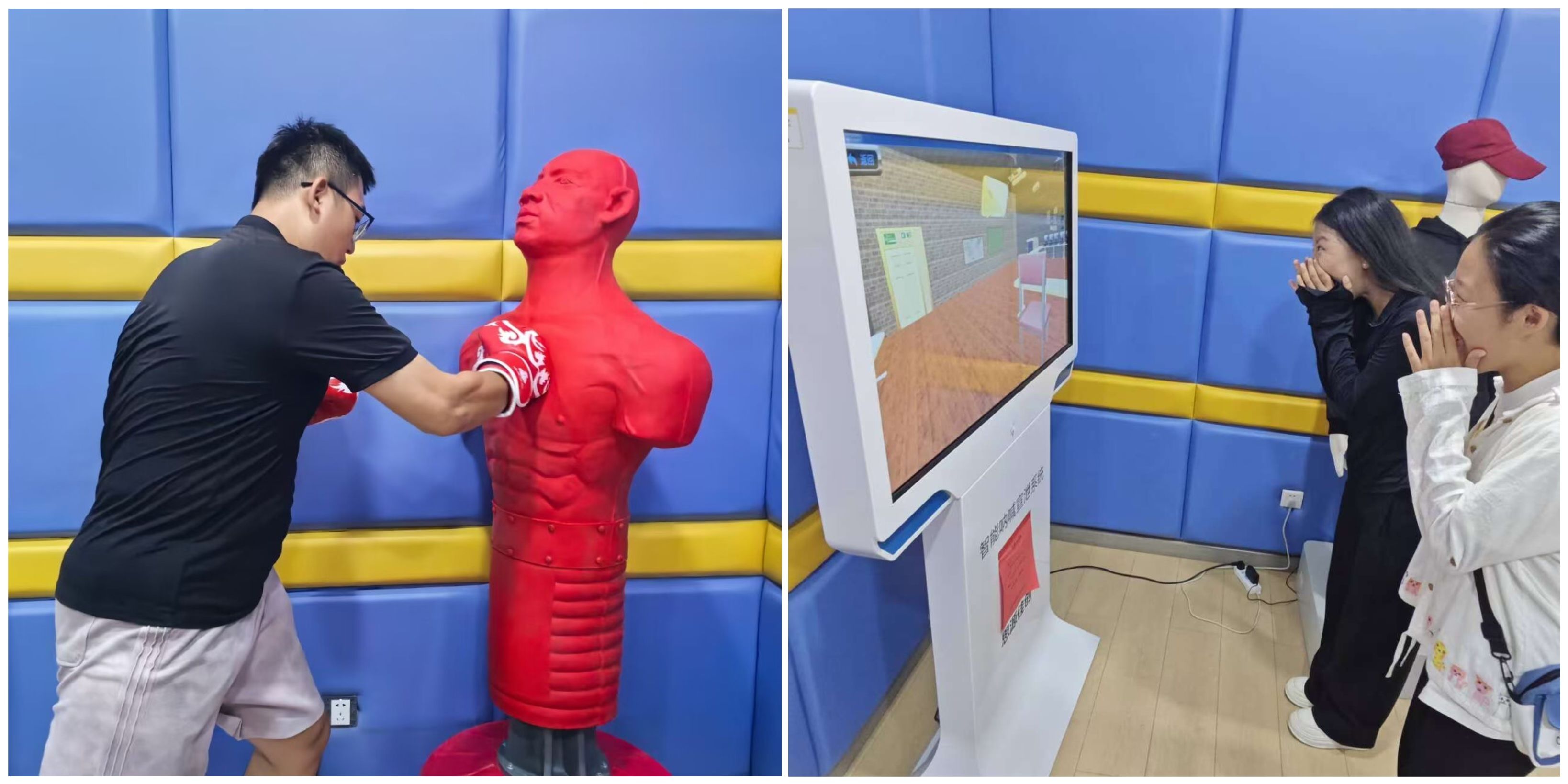 发泄室则成为了同学们释放情绪的好去处。在这里,同学们通过击打沙袋、呐喊等方式,将心中的压力和负面情绪尽情发泄出来。经过一番发泄,同学们脸上的笑容更加灿烂,心情也变得轻松愉快。