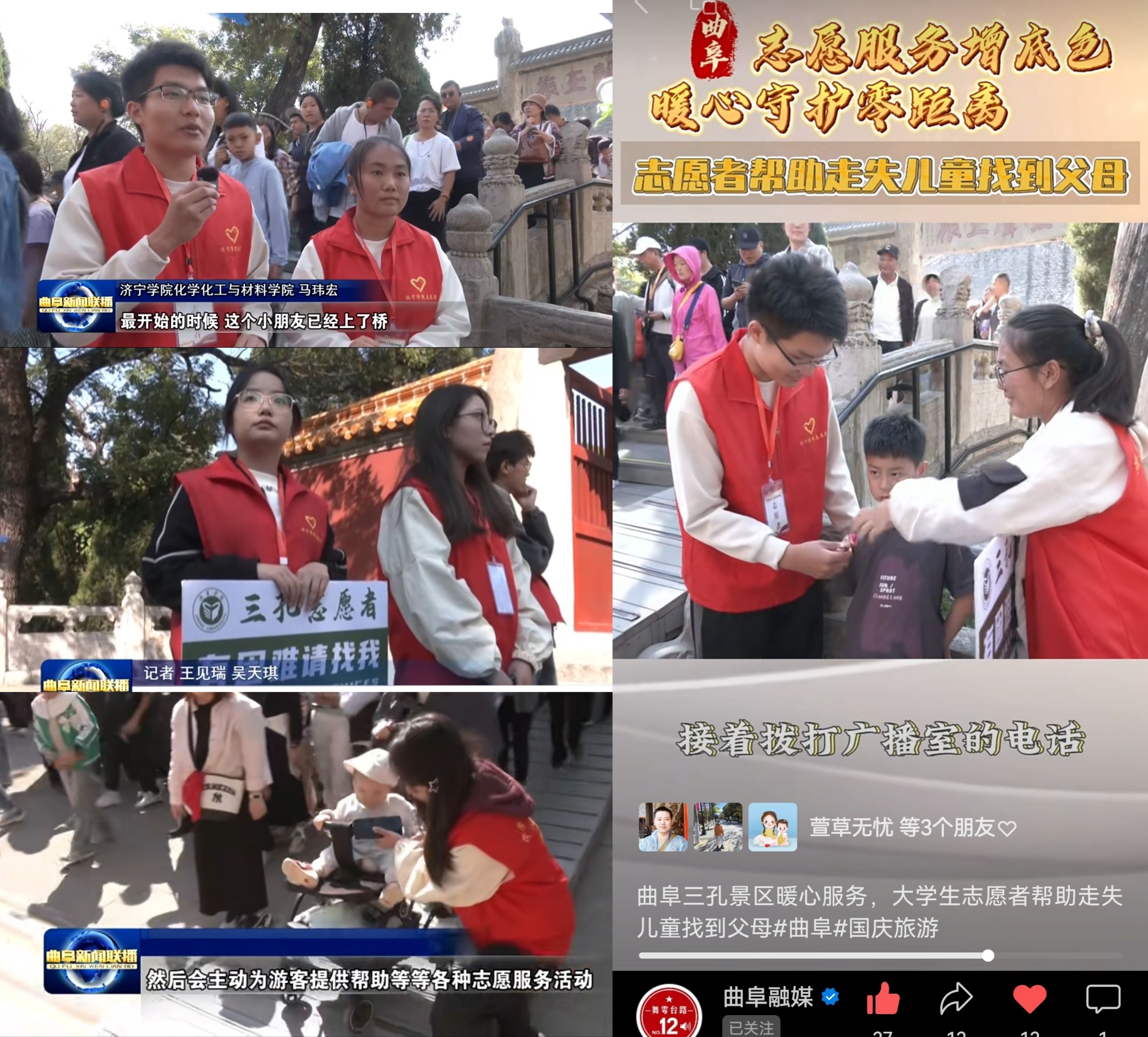 志愿者们赢得了各地游客、景区工作人员的高度认可和赞扬,曲阜新闻联播、“曲阜融媒”进行了相关报道。