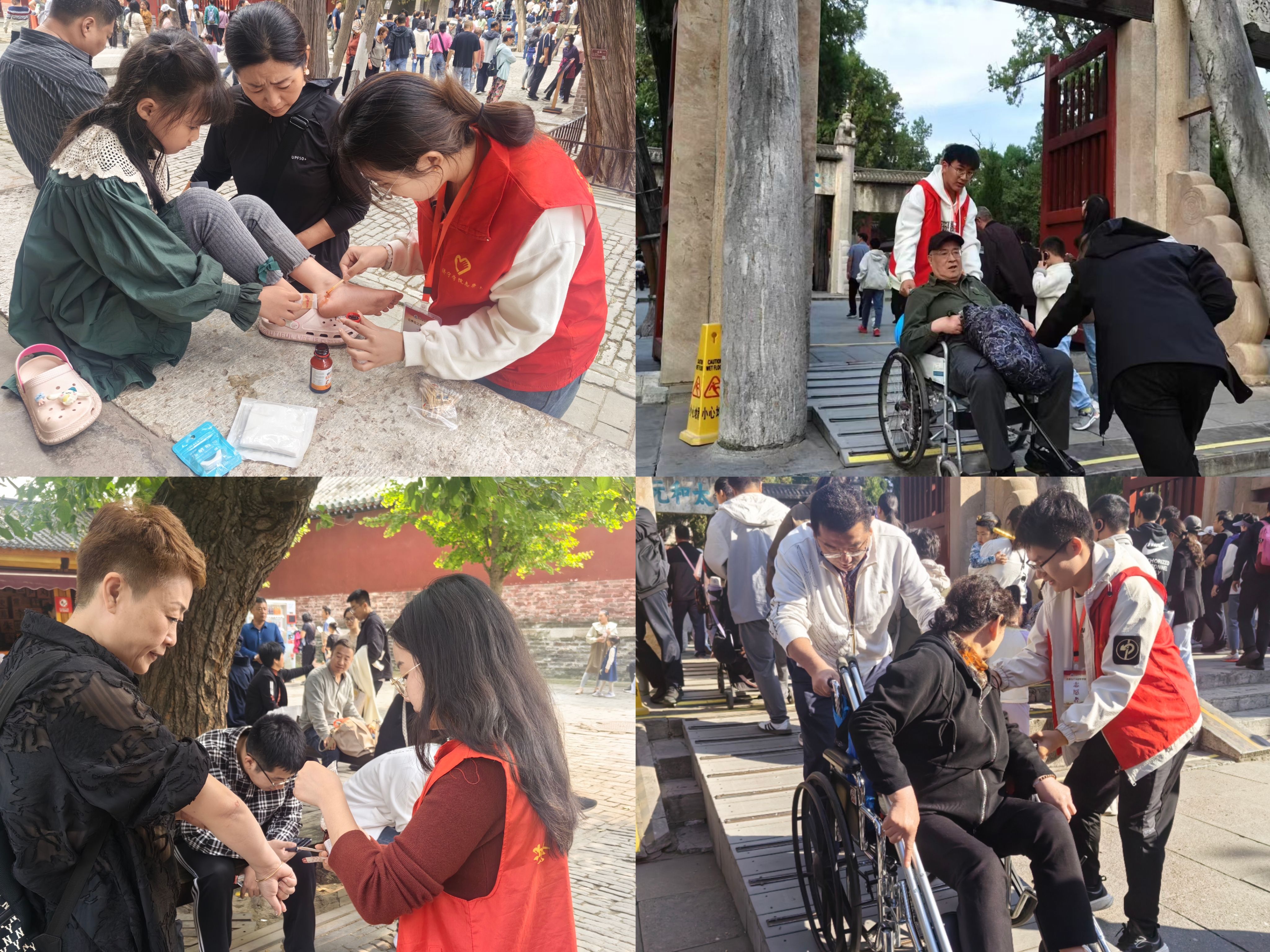 志愿者们耐心解答游客的各种问题共800余次,通过广播、巡查等方式帮助12个家庭寻找走散儿童,帮助游客寻找钱包、身份证等贵重物品11件,当遇到行动不便的老年人或是带小孩的家庭时,志愿者们主动上前搀扶、细心引导,确保他们能够安全、愉快地完成游览。