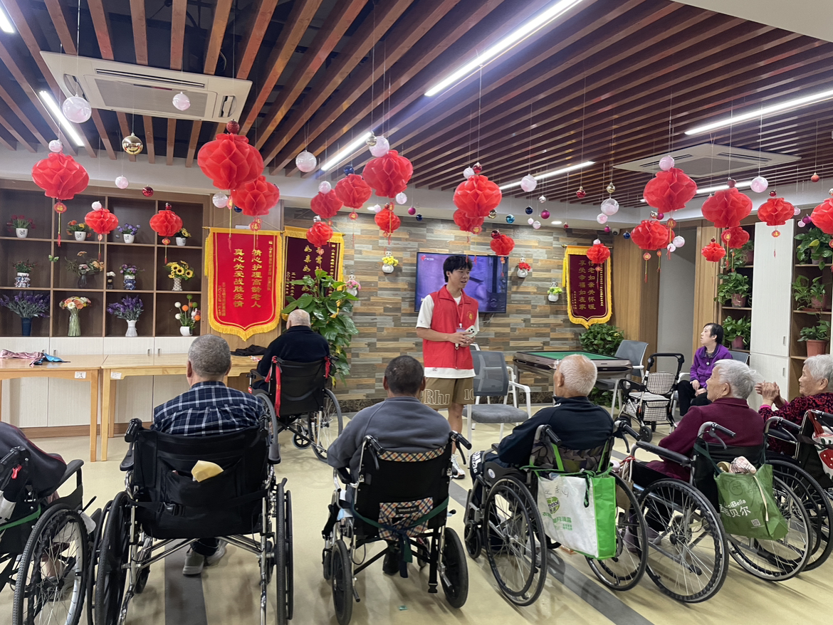 一位老人感慨地说:“这些大学生志愿者们下午来陪我们,给我们带来了这么多欢乐,真的很感谢他们。”