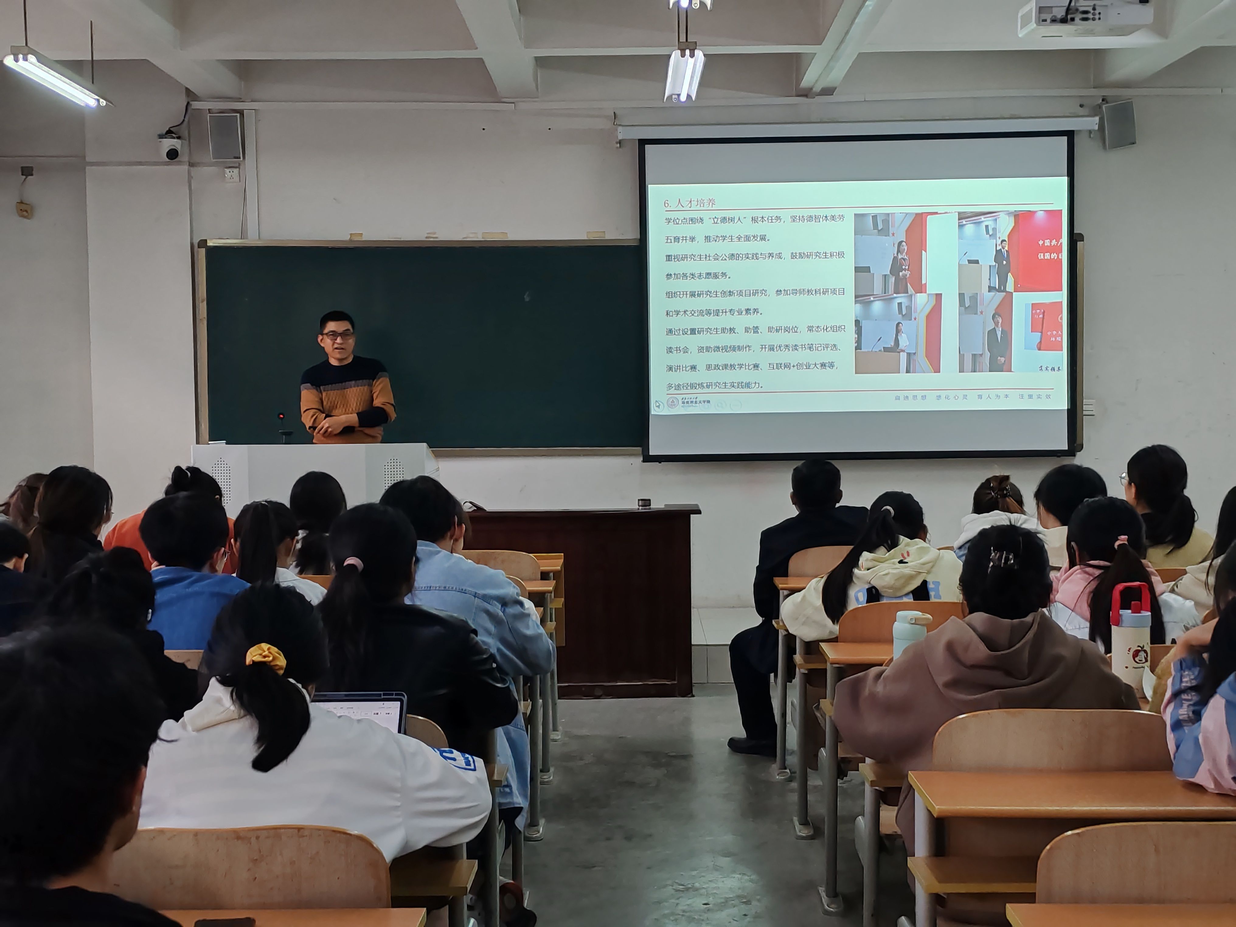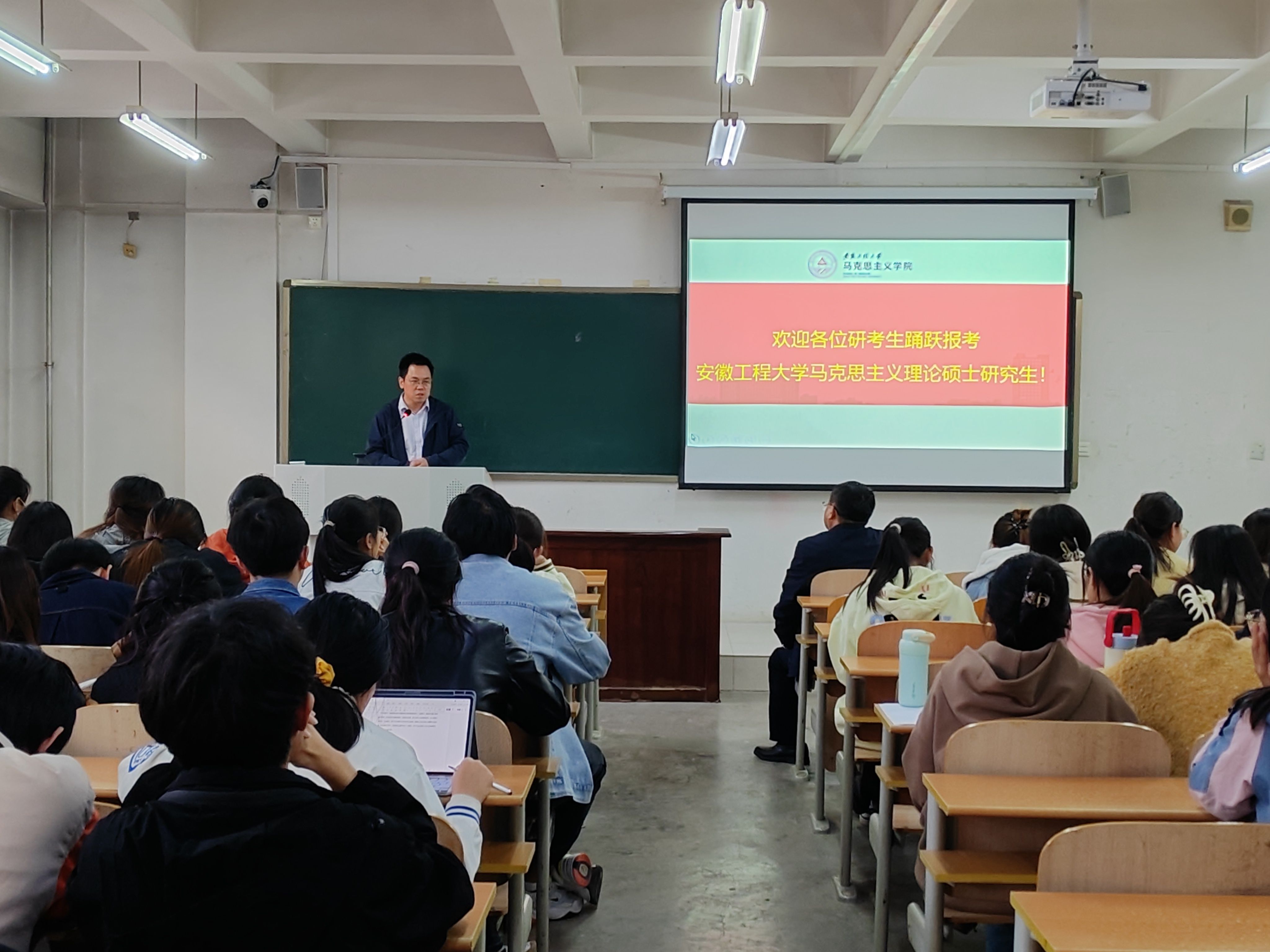 10月10日下午,安徽工程大学马克思主义学院副院长李海涛、研究生秘书李德才到亚星在线登录官网马克思主义学院开展考研招生宣讲,为怀揣梦想的学子们带来新的机遇与希望。宣讲会由马克思主义学院团委书记姚海生主持。