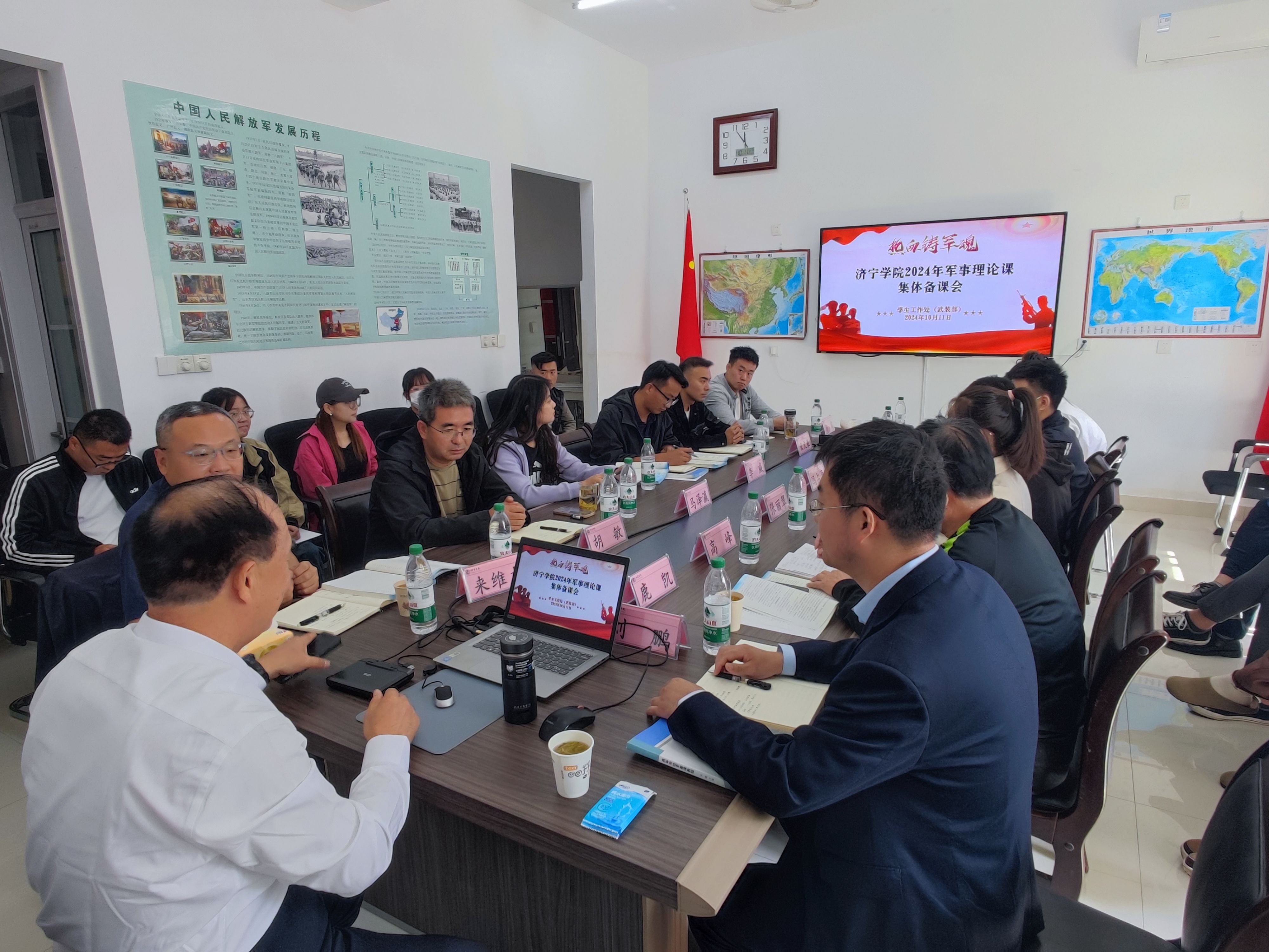上午,军事理论课集体备课会在征兵工作站进行,承担军事理论课教学任务的辅导员参加备课会。刘鹏教授从依据教学大纲,准备把握内容;围绕教学目标,精心课堂设计;针对教学对象,采取灵活方法三个方面提供详实的案例和独到的见解,使军事理论课教师对教学内容有了更深刻的认识和理解,进一步规范我校军事理论课程的教学,有效提升教师的教学能力。
