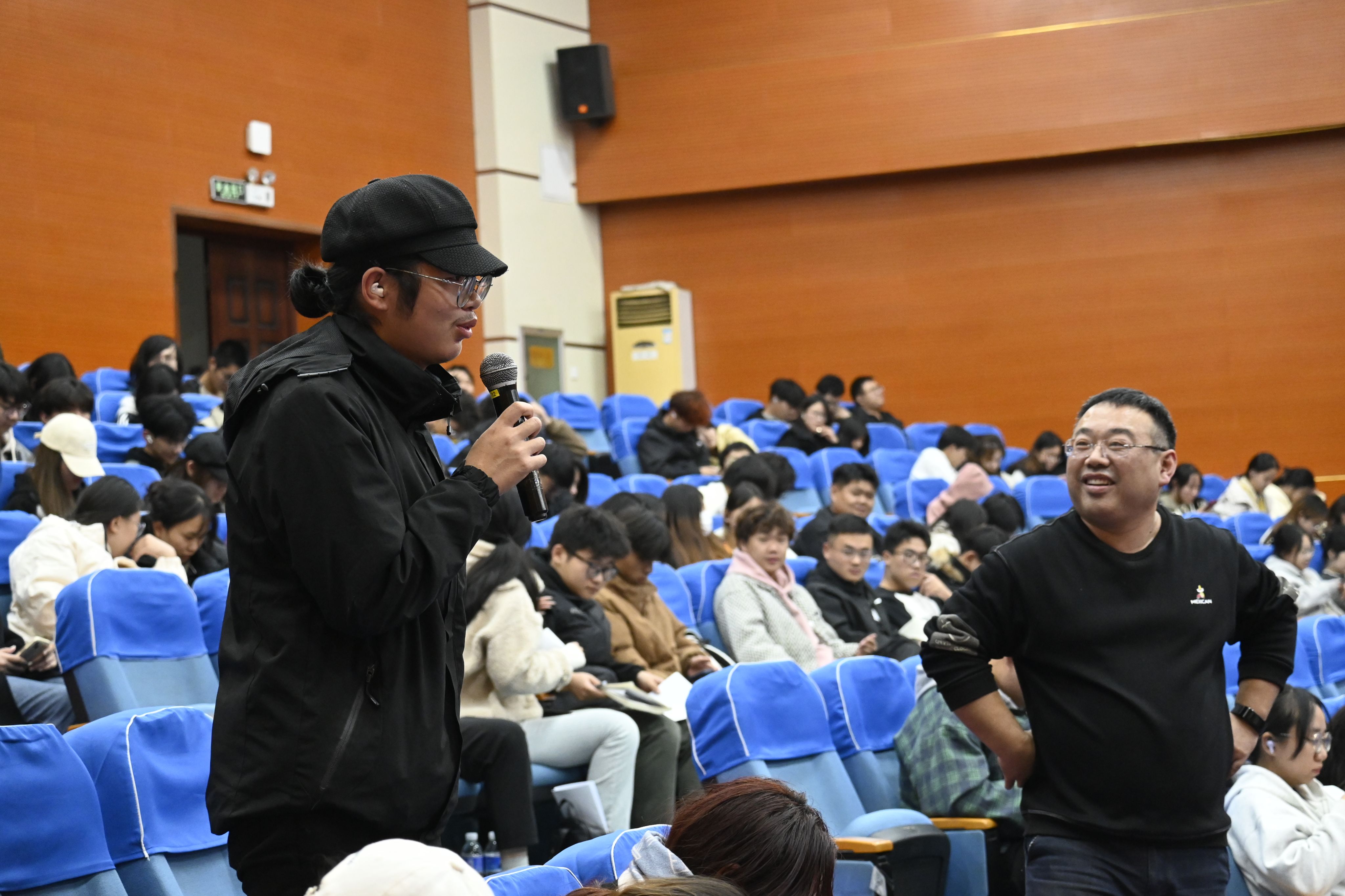 在讲座中,陈璐老师着重分析了直播电商行业的发展趋势及前沿动态,从直播策划、场景搭建、产品展示、互动技巧等方面进行了详细的讲解。她还通过现场实操演示,让同学们更加直观地掌握了直播技巧。此外,陈璐老师通过——如何通过更紧密的互动与用户建立起更为长久的“信任感”、如何更好地输出品牌价值、如真正实现“品效合一”这三个现实而生动的问题引发了现场的热烈讨论,他鼓励同学们紧跟行业趋势,发挥专业特长,服务电商直播行业。