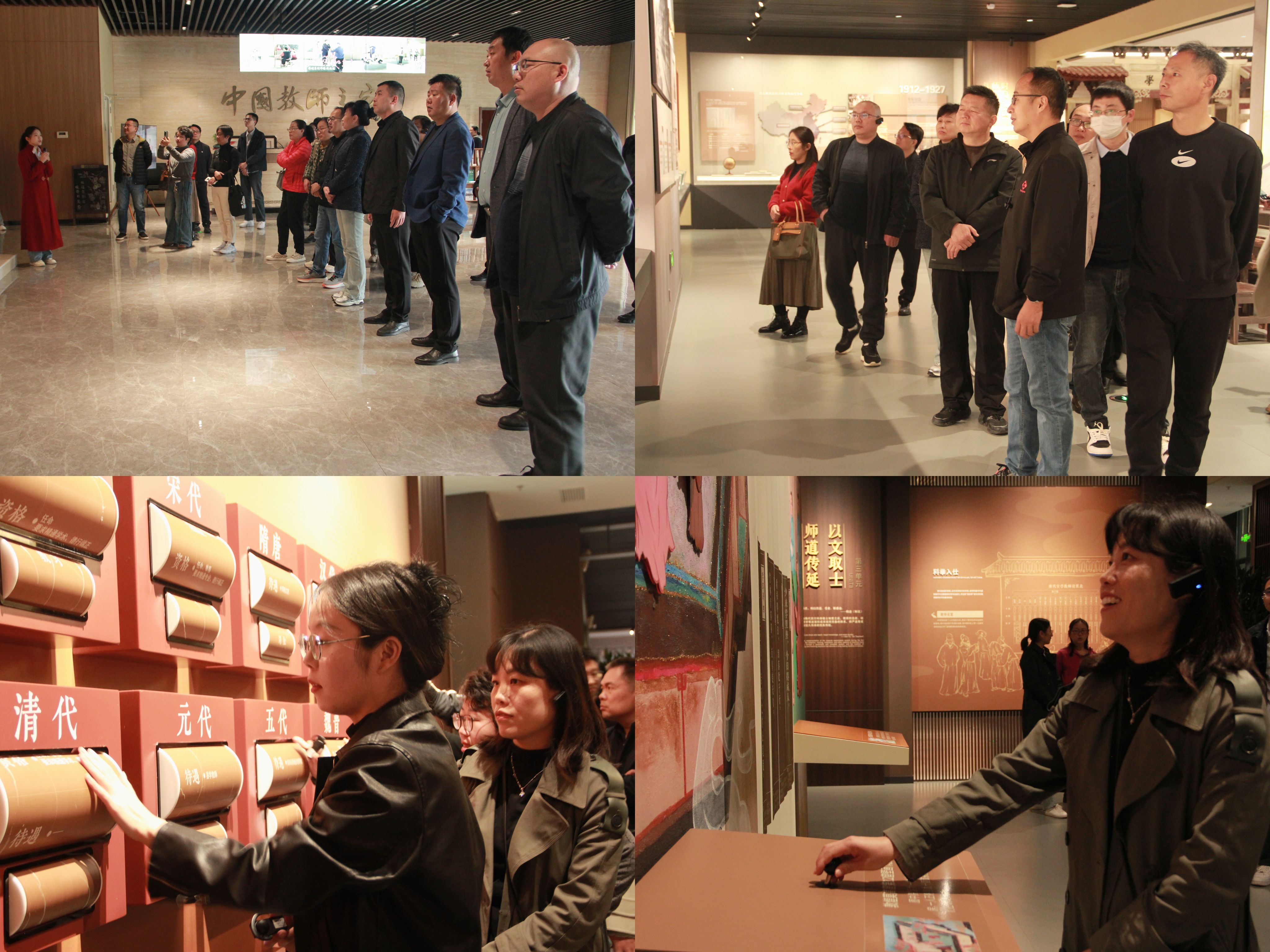 溯师道、明师德、弘师风,本次参观由“就道”门进入,由“弘道”门而出。学院教师先后参观了中国教师博物馆的《教师的历史》《教师的摇篮》《教师的典范》三个展区,通过现场聆听“风雅千年”“星夜如炬”“烛照芳华”“丹心筑梦”的讲解,观看文物史料、实物档案以及古今著名教育学家的物品、作品等,追溯师道源头。教师们在观物知史、见贤思齐的过程中深刻感受到中华民族尊师重道的历史厚度、人文深度与时代温度。