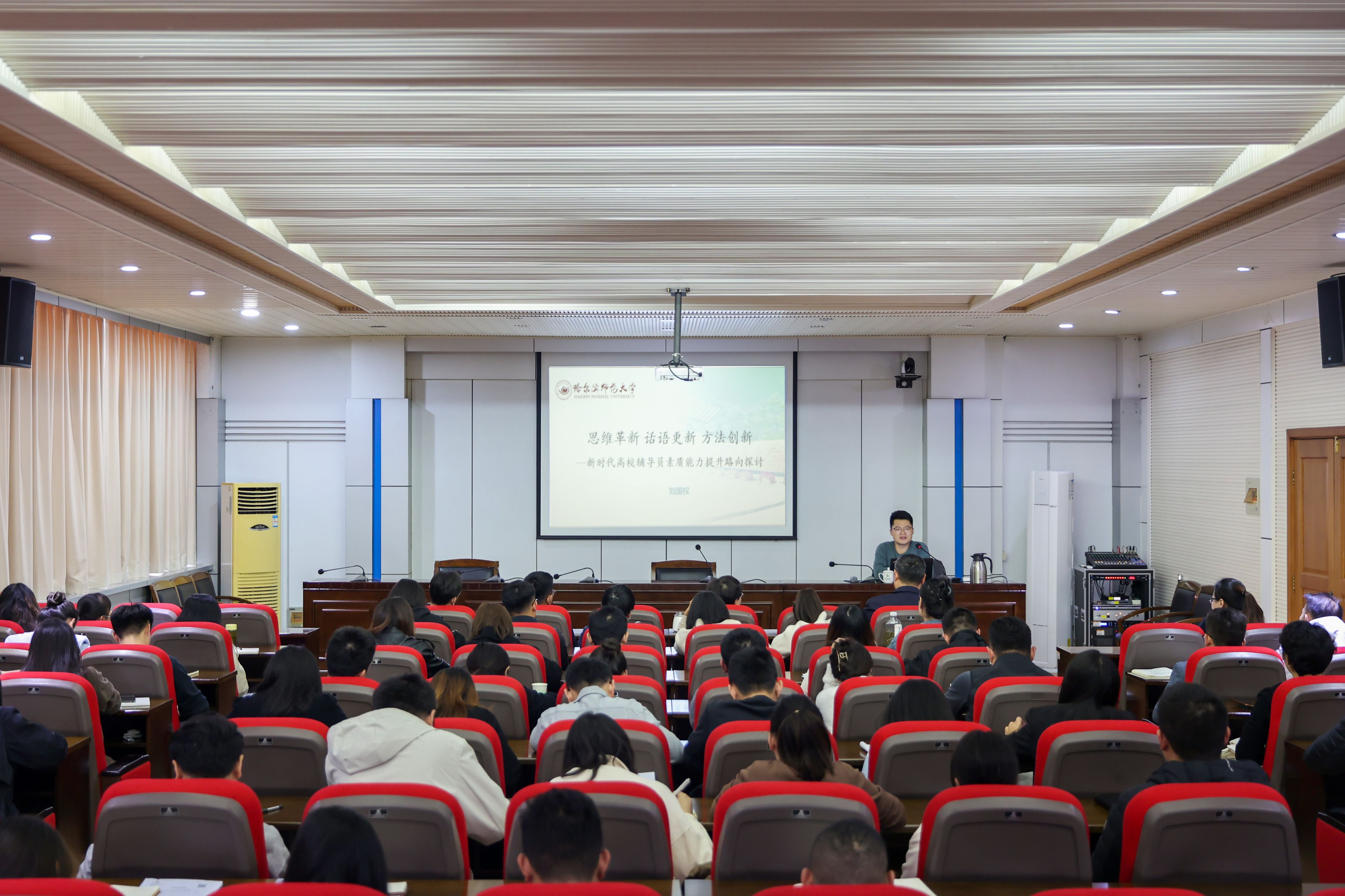 10月24日,全国“最美高校辅导员”,哈尔滨师范大学融媒体中心主任、传媒学院辅导员刘国权应邀来我校作报告。各二级学院党委副书记、全体辅导员参加报告。