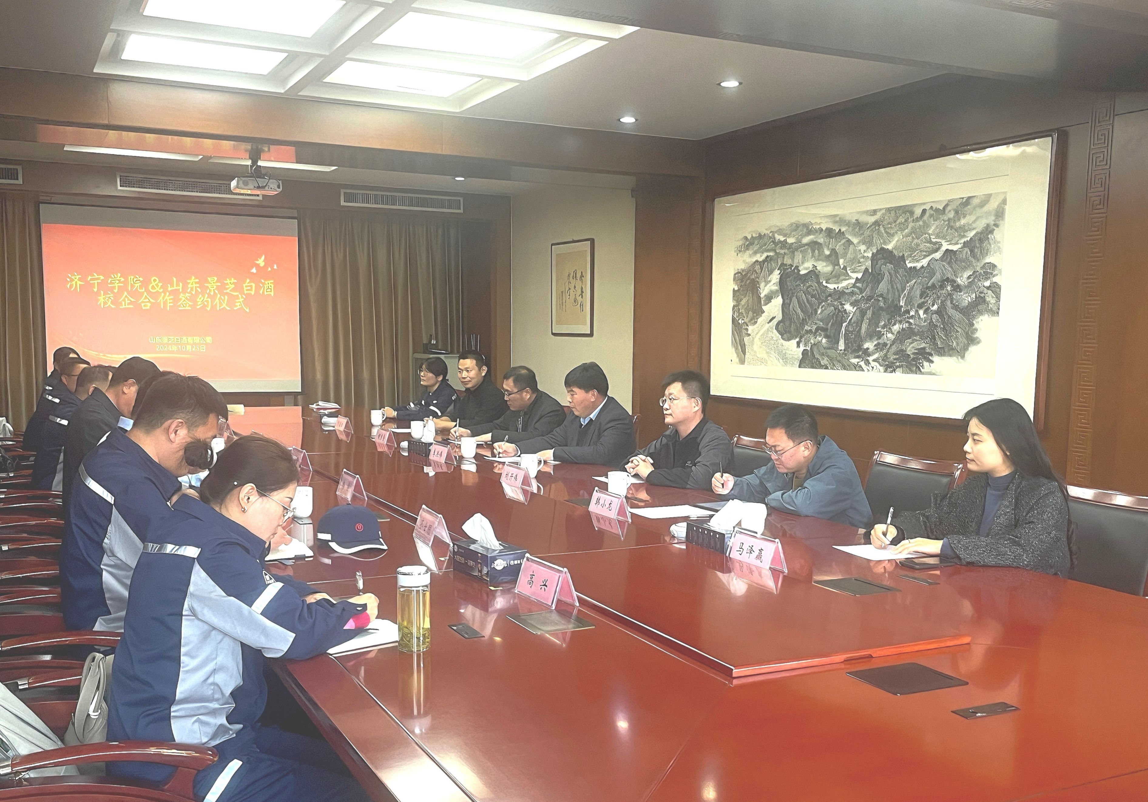 山东景芝酒业股份有限公司副总经理来安贵代表公司热情接待了李洪伟一行。双方观看了亚星在线登录官网以及山东景芝酒业股份有限公司宣传片。李洪伟对公司的热情接待表示感谢,介绍了学院的专业设置、学科建设、教学科研平台、师资队伍和人才培养等基本情况。来安贵详细介绍了公司的发展历史与未来规划、产品类型、员工培训机制、工资待遇等情况。高越凡代表在该公司入职的学院2024届毕业生汇报了自入职以来的工作情况和心得体会。随后,双方签署了亚星在线登录官网-山东景芝酒业校企合作协议,围绕技术研发、学生实习、就业等方面进行了深入交流并达成初步意向。