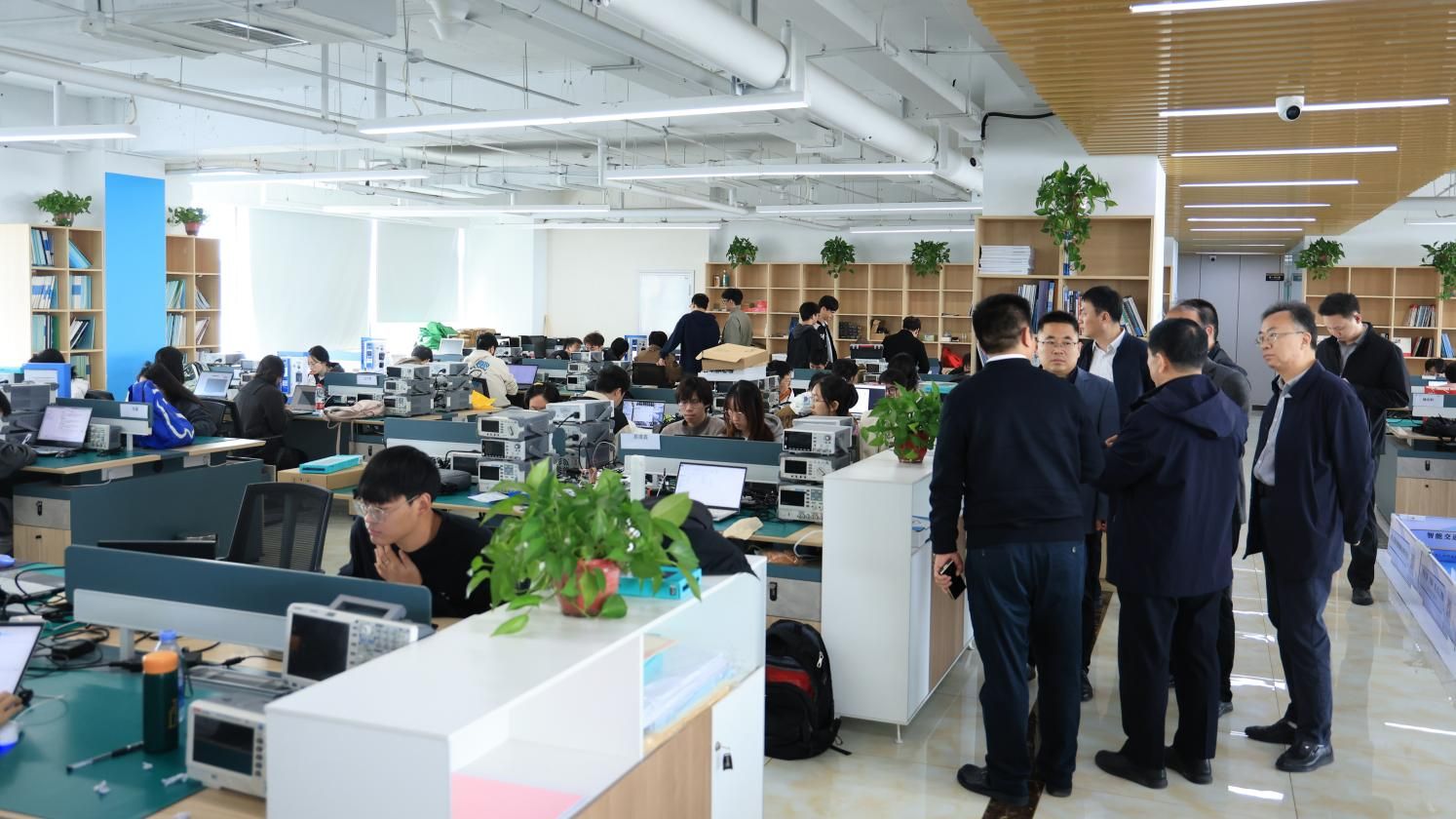 随后卫建勋一行在张明伯等的陪同下参观了公司实习实践产教融合服务基地、产品研发区、党建活动室等。整个基地硬件基础完备,配套设施齐全,既能为学生提供良好的实习实践场所,也能帮助学生提升就业创业技能。