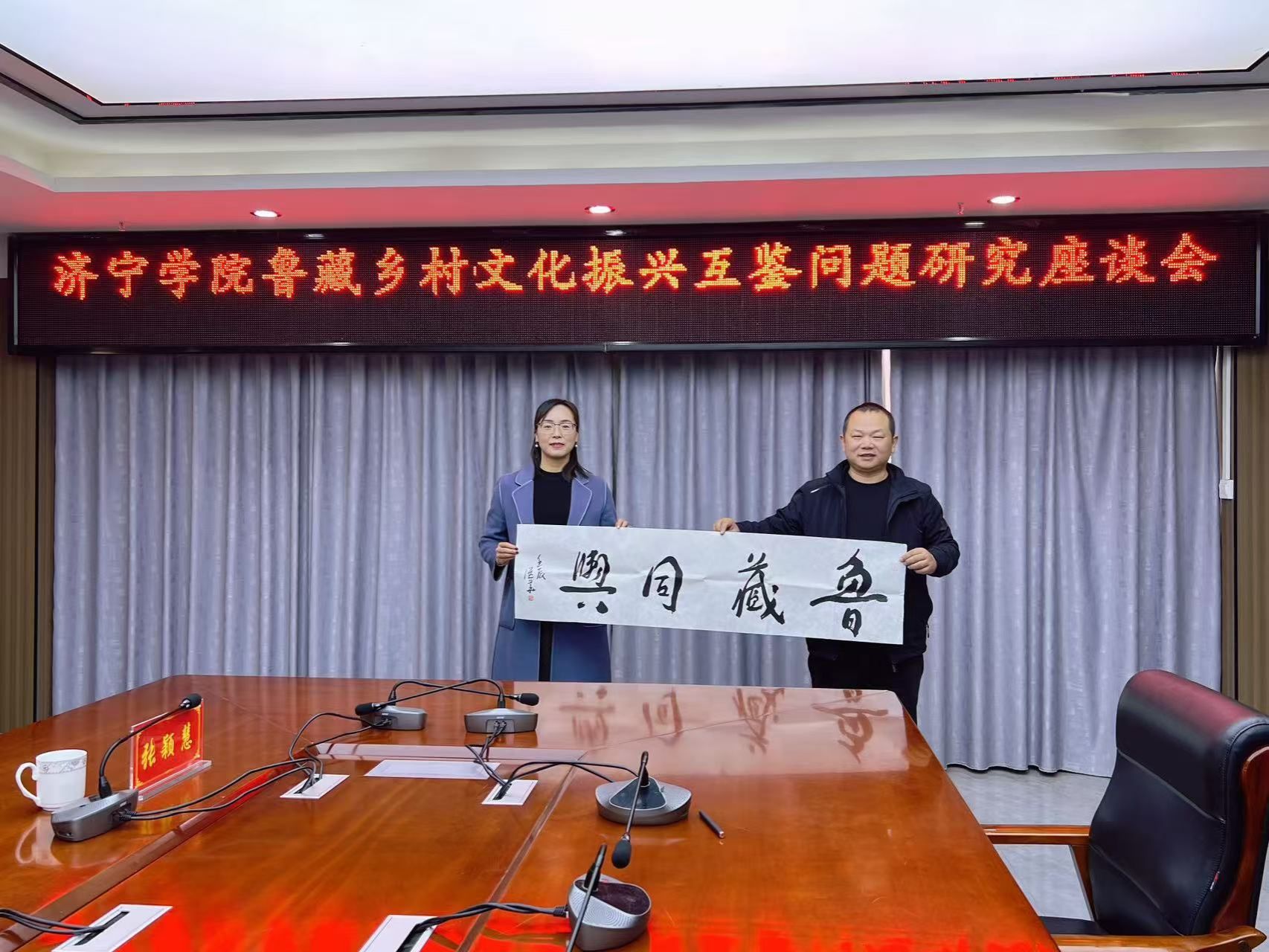 考察调研期间,课题组向山东省援藏干部中心管理组赠送了由课题组成员、我校美术学院院长张继华副教授精心创作的书法作品以及山东文化题材的石刻拓片,以此表达对山东援藏干部的敬意和对两地“三交”工作的支持。这些作品不仅展示了山东文化的独特魅力,也为鲁藏两地的文化交流增添了新的内涵。