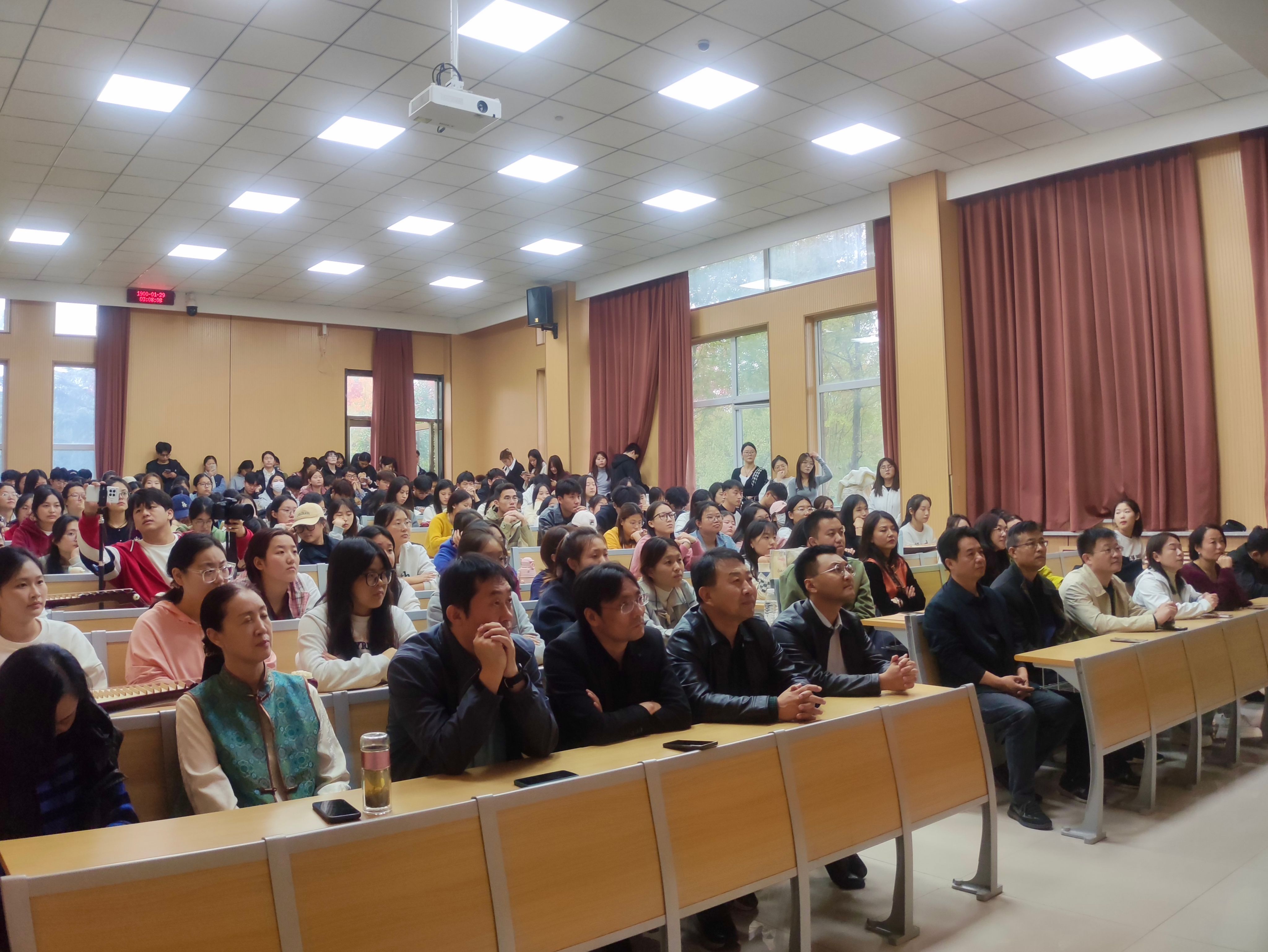 10月31日下午,由校团委、音乐学院党委主办、音乐学院教工党支部、音乐学院团委承办的“音乐美育大课堂系列讲座”第一期在热烈的氛围中拉开了帷幕。此次讲座在音乐学院B129教室举行,以“琵琶的前世今生”为主题,音乐学院党委书记辛亚杰、校团委副书记李尊、各二级学院党委副书记代表出席本次讲座。讲座共吸引了来自全校各个学院的200余名学生前来聆听,共同探索中国传统乐器的独特魅力。