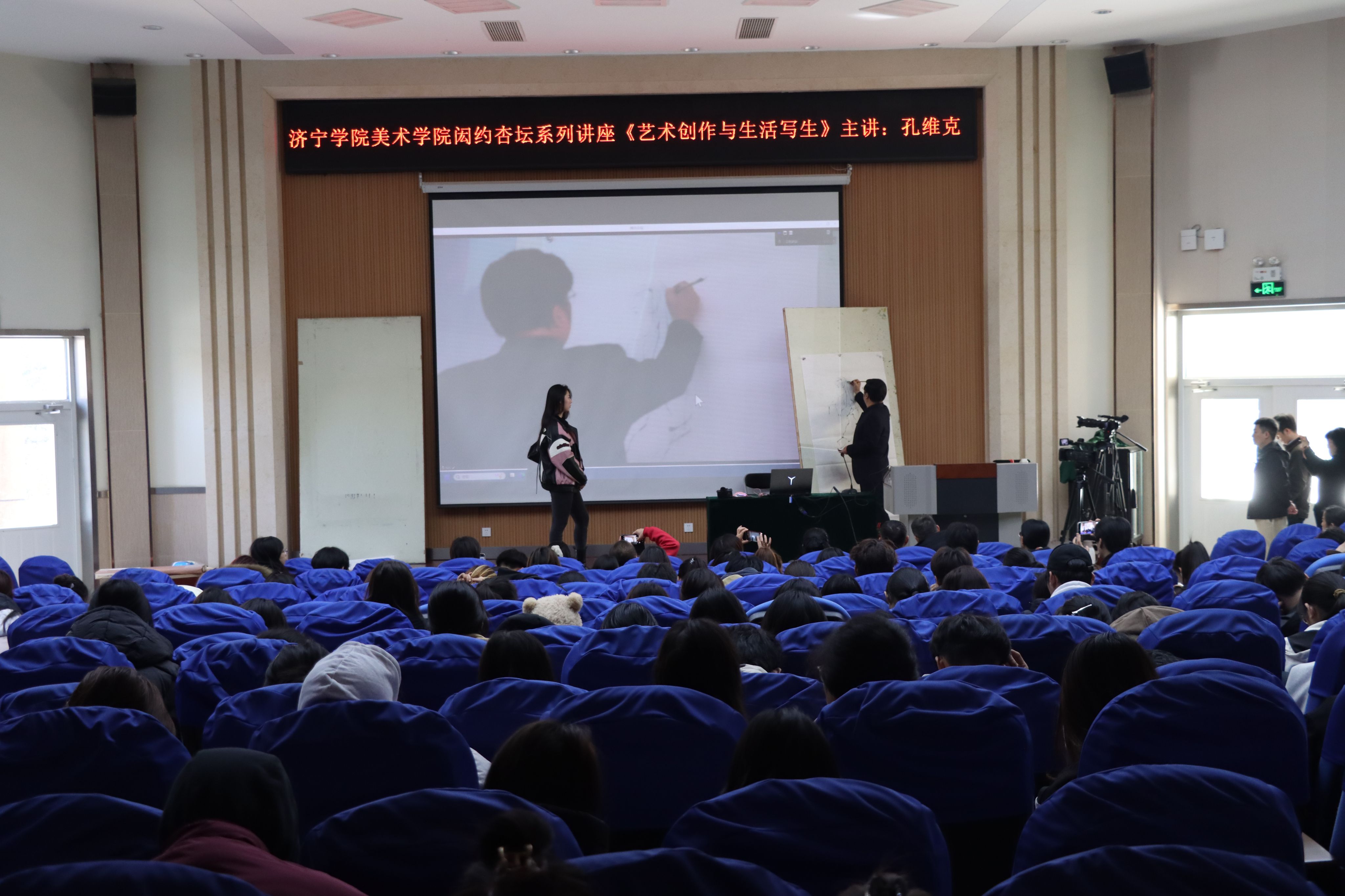 11月6日上午,我校美术学院1977级校友、全国政协委员、民革中央画院院长、山东画院名誉院长、国家一级美术师孔维克做客美术学院“闳约杏坛·大家讲堂”,在3号楼报告厅作题为《艺术创作与生活写生》的学术讲座。美术学院师生及社会各界书画爱好者三百余人到场聆听。讲座由美术学院学术副院长狄东占主持。