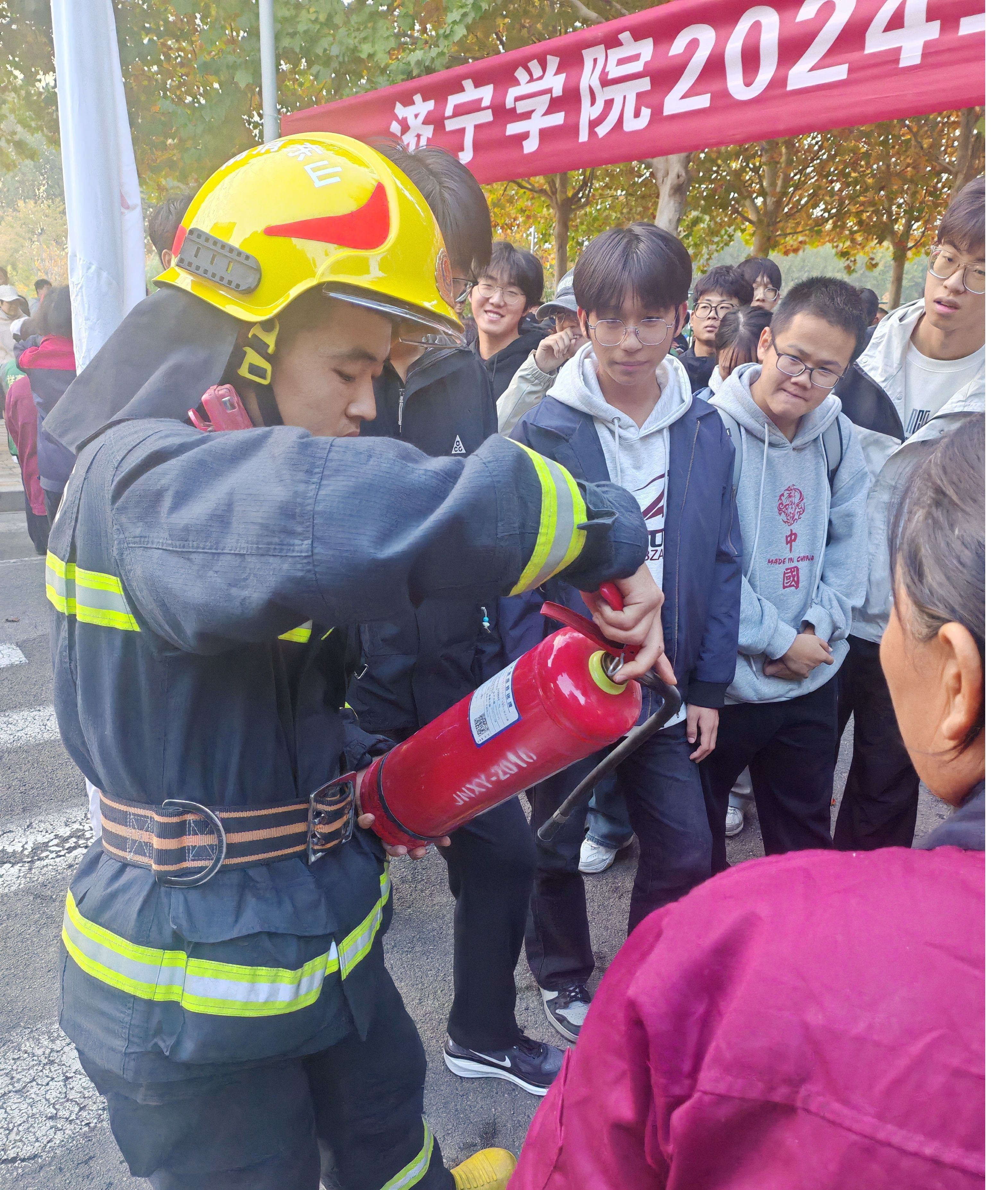 为提升师生消防安全意识,筑牢消防安全防线。11月8日下午,学校邀请曲阜市消防救援大队联合举办2024年冬季消防培训演练。党委办公室(院长办公室)、宣传部、学生工作处、后勤管理与基建处、安全保卫处、离退休工作处、图书馆、网络安全与信息管理中心、实验教学与设备管理中心,各二级学院实验室安全管理人员,新入职教职工,安保、餐厅、超市、绿化、物业、通勤车服务人员,大学生自律委员会、安委会成员,班级安全员、义务消防员,约400人参加了培训演练。演练由李和平主持。