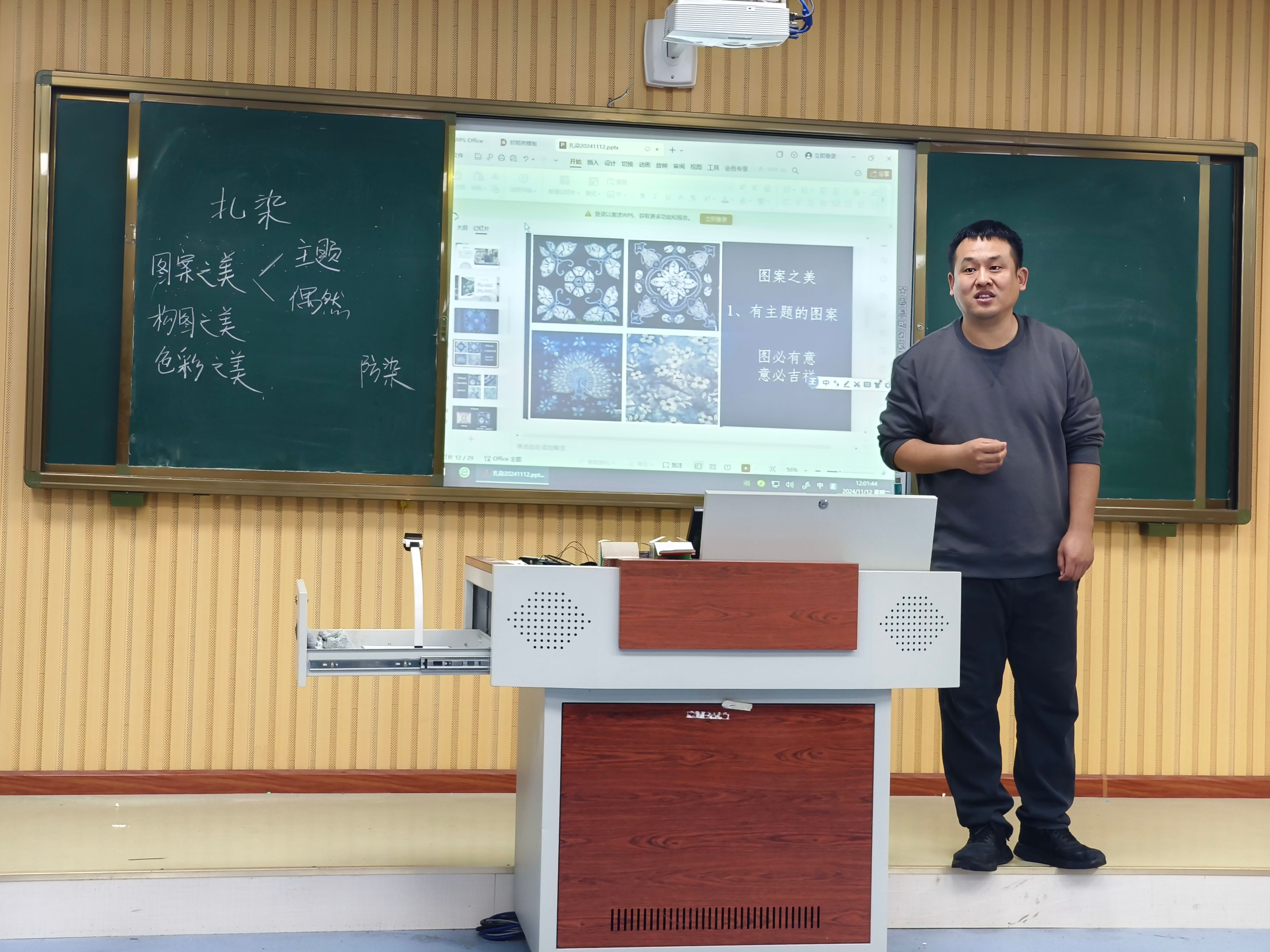 在点评课环节中,曲阜市教研员高文明对十一位实习学生的不同版本教材运用、教学设计、课堂管理等给予精准、到位、有高度、有深度的点评与指导建议,为学生更好地完成实习支教工作提出了明确要求。校内外指导教师在交流中也探讨了中小学新课标的美育理念和课堂教学技能,并针对实习学生教学中存在的问题给予了具体的指导。最后,指导教师与实习学生一起听取了曲阜师范大学附中骨干教师的一节《蜡染》观摩课,深受启发与引导。通过本次听评课与指导活动,有效提升了实习支教学生的课堂教学实践能力,也为校地美育实习实践合作开拓了新的平台。