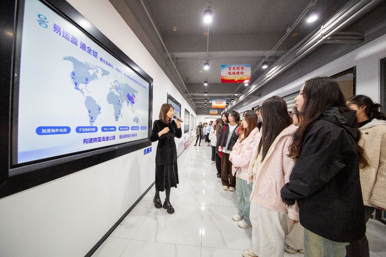 易运盈(山东)网络科技有限公司对师生们的到来表示热烈欢迎,公司总经理苏安琪、董事长助理韩猛以及市场运营负责人王囡亲自接待并陪同参观。师生们首先参观了公司的办公环境,感受了现代化企业的氛围和活力。随后,在公司代表的引领下,师生们深入了解了易运盈在IT领域的创新成果——易盈出海数字外贸管理系统及其跨境电商运营模式。该系统以其高效、智能的特点,为企业的国际化发展提供了有力支持,也为学院跨境电商课程群提供了生动的实践案例。