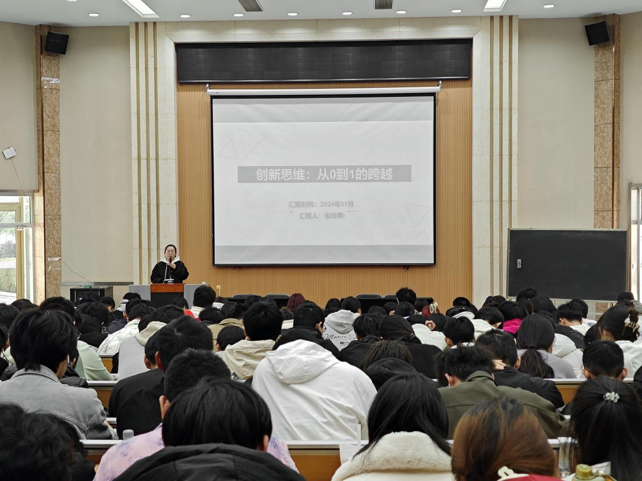 朱玲燕以《创新思维:从0到1的跨越》为主题,从如何效率选题、关键问题及加分项、答辩与路演、案例分析等四方面,围绕创新创业赛事进行了赛况解读和备赛要点分析,并对赛道选择、项目名称拟定、规划书撰写等方面进行了详细的讲解。结合自身学生时代的中国国际大学生创新大赛(原互联网+)国赛金奖项目,朱玲燕为同学们分享了自己备赛经验,包括市场调研、商业模式设计、资源整合、团队建设等,以此激发同学们的创新思维,鼓励同学们积极探索比赛新路径。在互动环节中,朱玲燕与学生就创新创业相关话题进行深入探讨,帮助同学们拓展思路、领会方法。