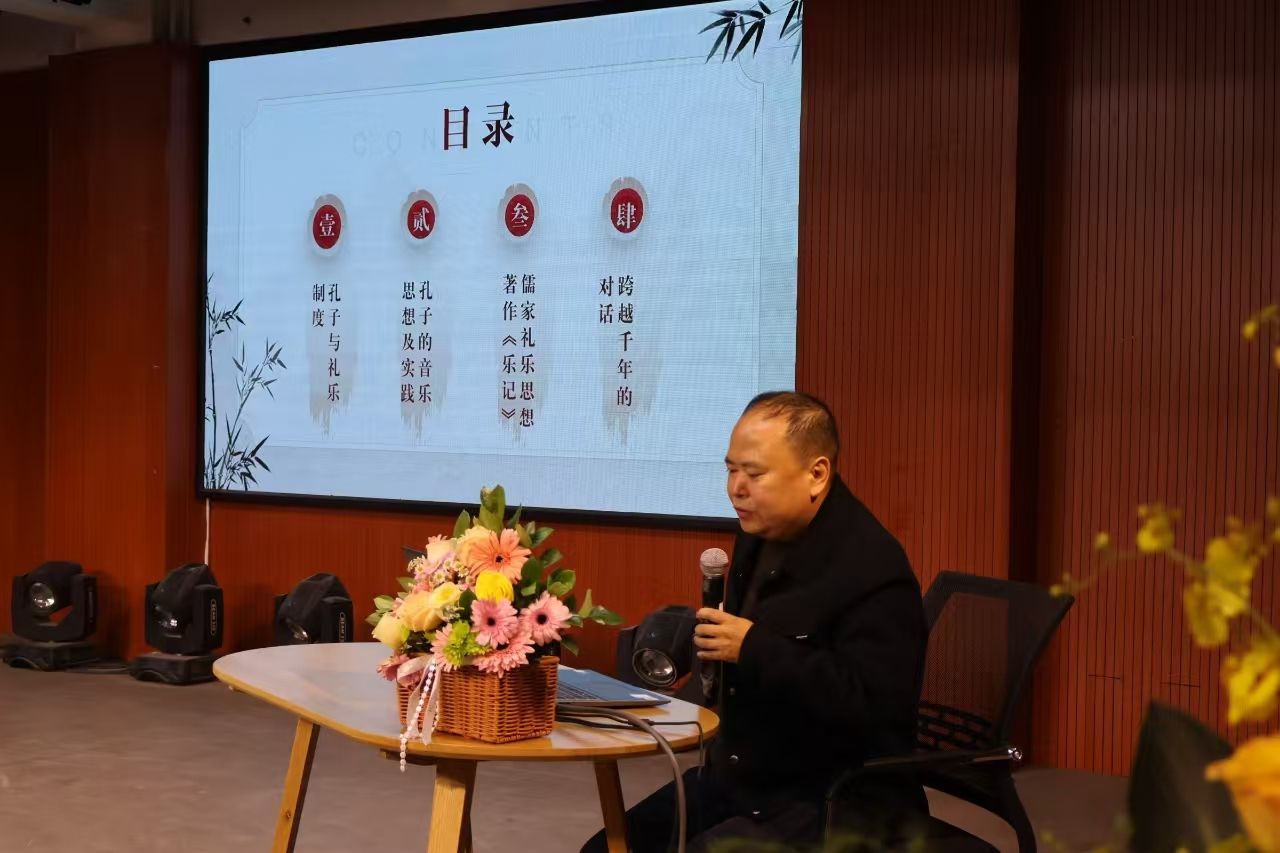 11月21日下午,由校团委、音乐学院党委、音乐学院教职工党支部、音乐学院团委承办的“音乐美育大课堂系列讲座”第四期“孔子与音乐”在音乐学院成功举办。此次讲座以“孔子与音乐”为主题,音乐学院党委书记辛亚杰、副院长杨昉、各教研室主任、老师代表出席本次讲座。讲座共吸引了来自全校各个学院的200余名学生前来聆听,共同探索先师孔子的音乐思想。