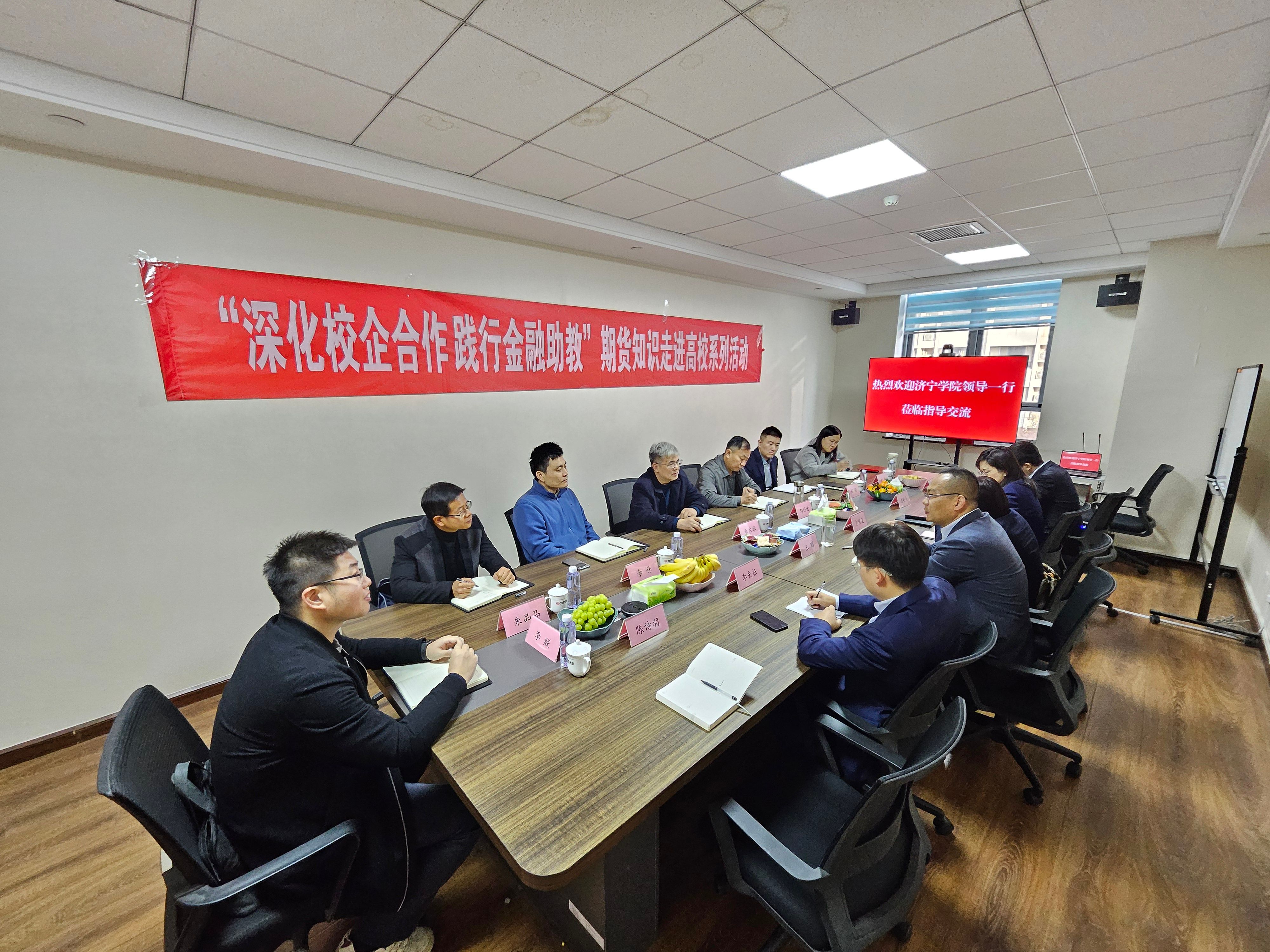 为充分了解社会及企业人才需求,进一步深化产教融合、校企合作,全力促进我院毕业生高质量就业工作提质增效。11月24日,经济管理学院党委书记乔东华、教学科研办公室主任邢仕宏带领教师团队前往中泰期货进行访企拓岗,旨在深化校企合作,促进学生就业和专业发展。