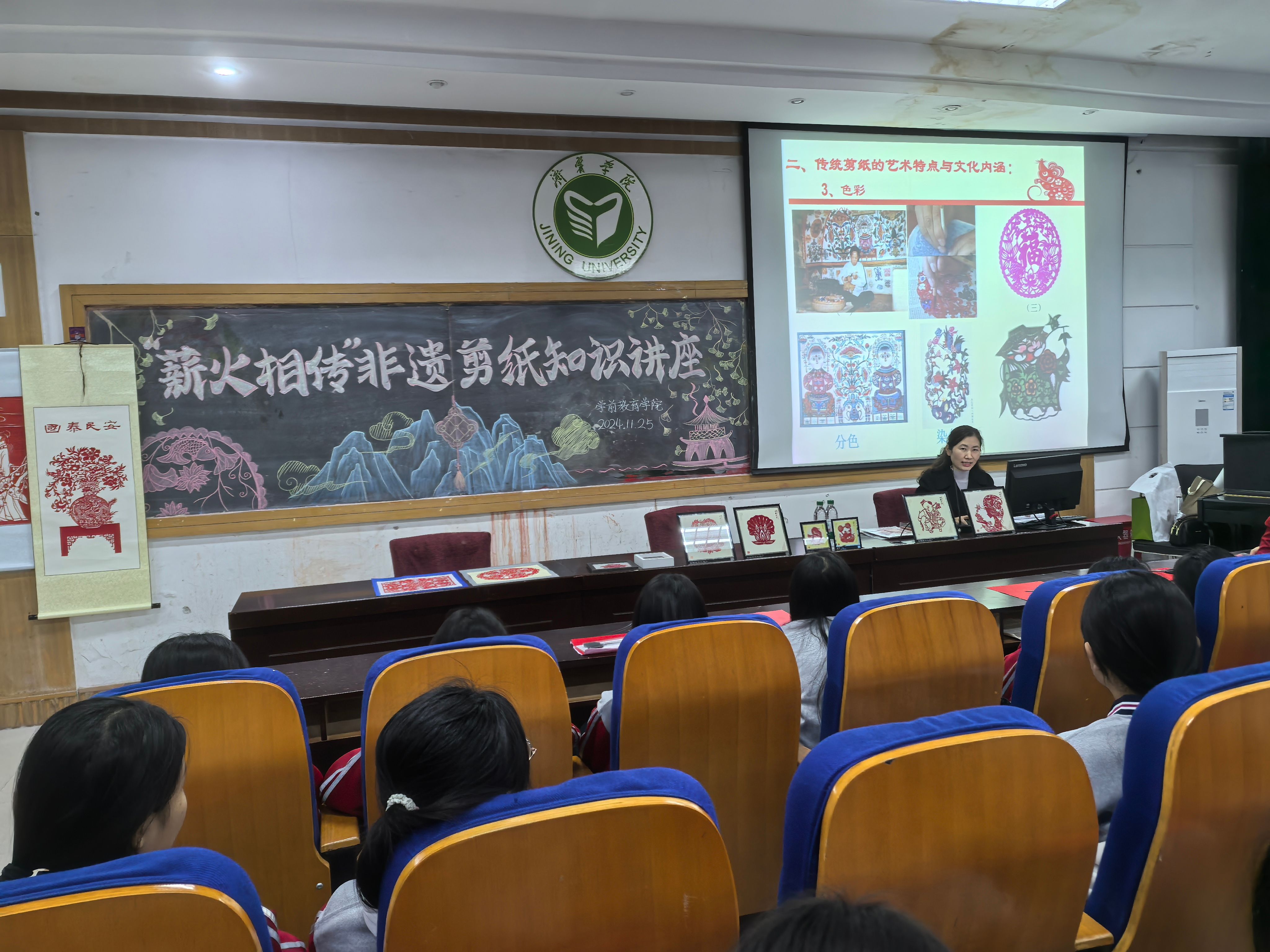 为让传统文化创造性地融入高校思政育人,使优秀传统文化与专业特色巧妙融合,11月25日,学前教育学院在学术报告厅举办“薪火相传”非遗剪纸知识讲座。此次讲座由济宁市兖州区非遗传承人张琳琳老师担任主讲,学前教育学院技能教研室教师、学前教育专业2021级、2022级学生参与活动。