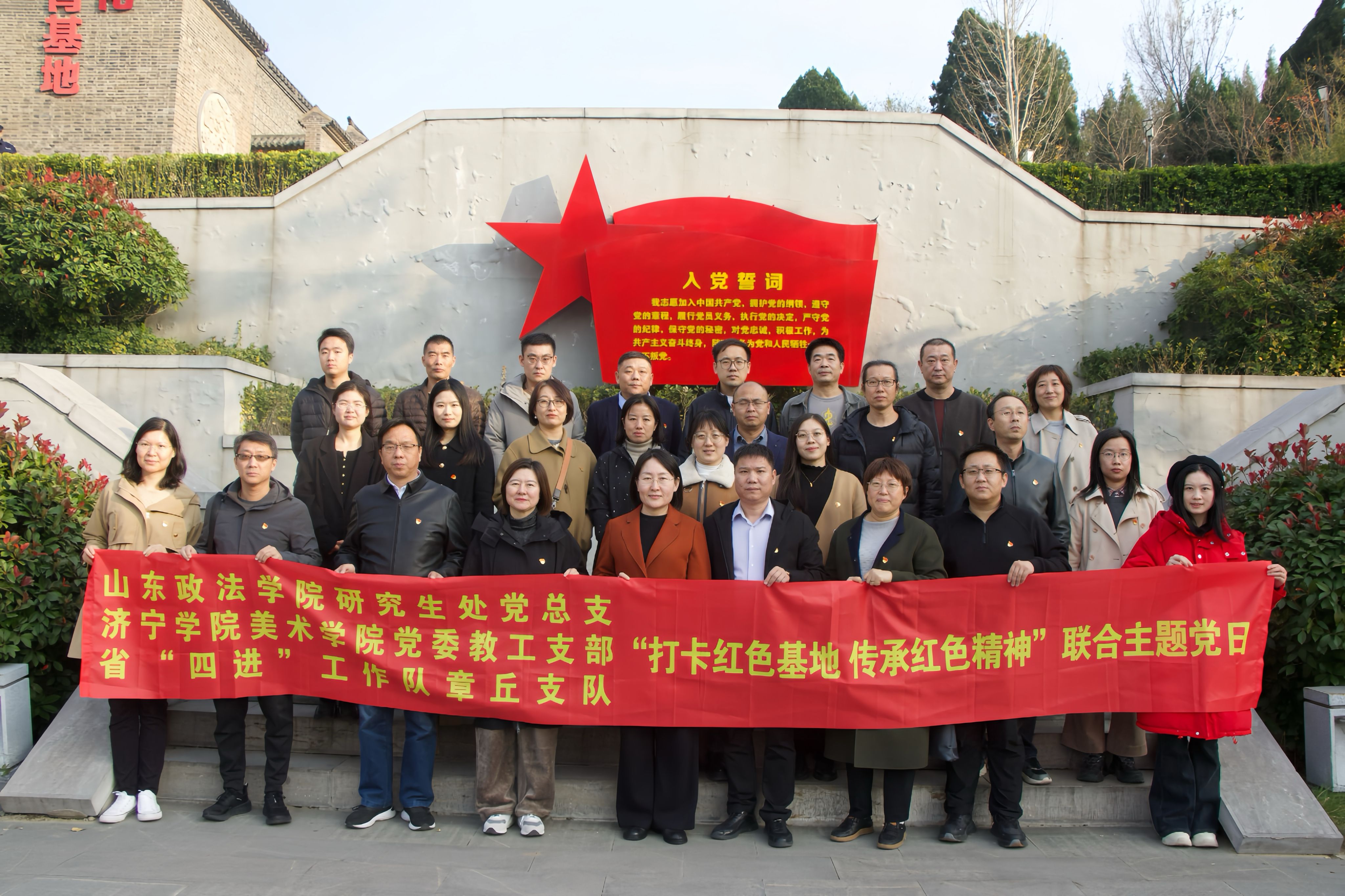 为深入学习贯彻党的二十届三中全会精神,进一步增强党性意识,加强党性修养,始终保持干事创业的精神状态。11月23日至24日,美术学院教工支部前往章丘,与山东政法学院研究生处教工党支部、省“四进”工作章丘支队临时党支部共同开展“学思想 履足迹 建新功”主题党日活动。美术学院党委书记杨晓青、副书记胡国梁,党支部党员和部分教师代表共同参加了此次活动。