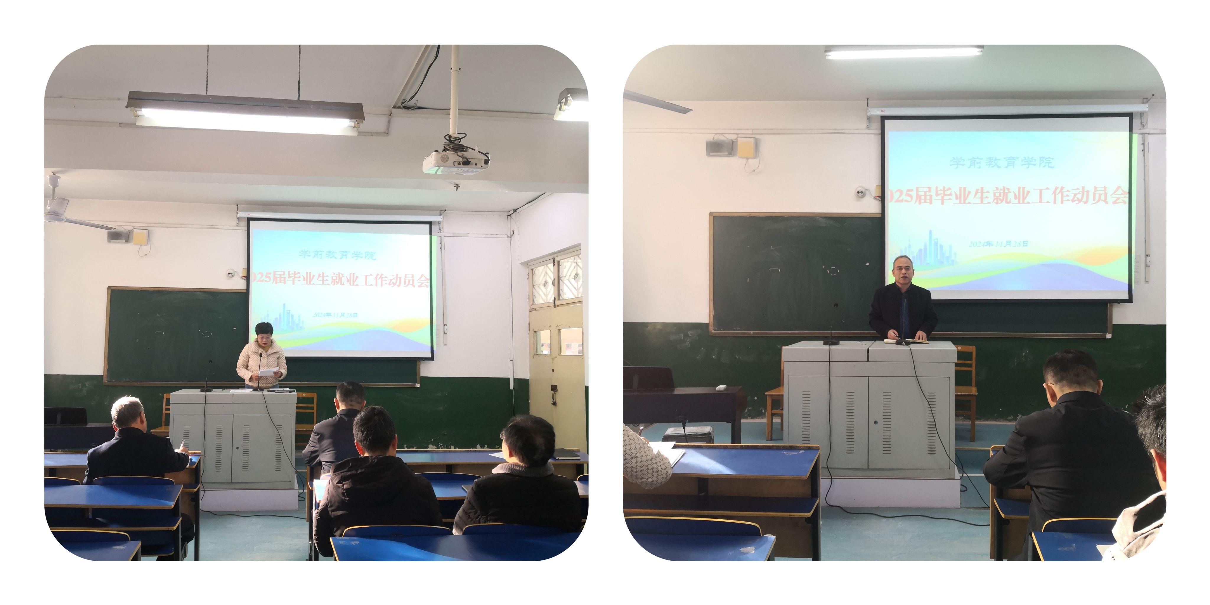 为切实做好2025 届毕业生就业工作,充分凝聚教职工集体力量,形成全员促就业的良好局面,11月28日下午,学前教育学院召开 2025 届毕业生就业工作动员会。学前教育学院班子成员、全体教职工参加会议。