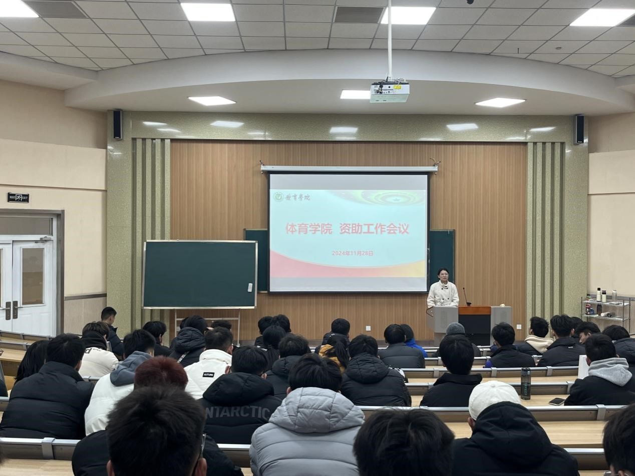 为切实做好学生资助工作,大力推进资助育人实效,进一步加大学生资助政策宣传力度,11月28日下午,体育学院在4号楼B101教室召开2024年学生资助工作会议。本次采取“线上+线下”模式同时进行,体育学院辅导员王天聪主讲,学院团委学生会资助服务部及体育学院2024-2025学年认定的全体家庭经济困难学生参会。