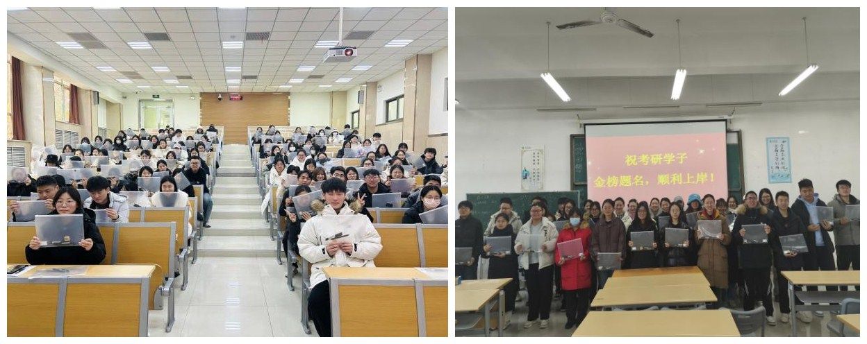 考研学生代表上台分享了备考过程心得体会;辅导员和在校学生代表送上了暖心祝福,为考研学子加油打气、振奋精神。同时,学院为考研学子发放了“考研加油”礼包,让考研学子们感受到了学院温暖的关怀和美好的祝愿。