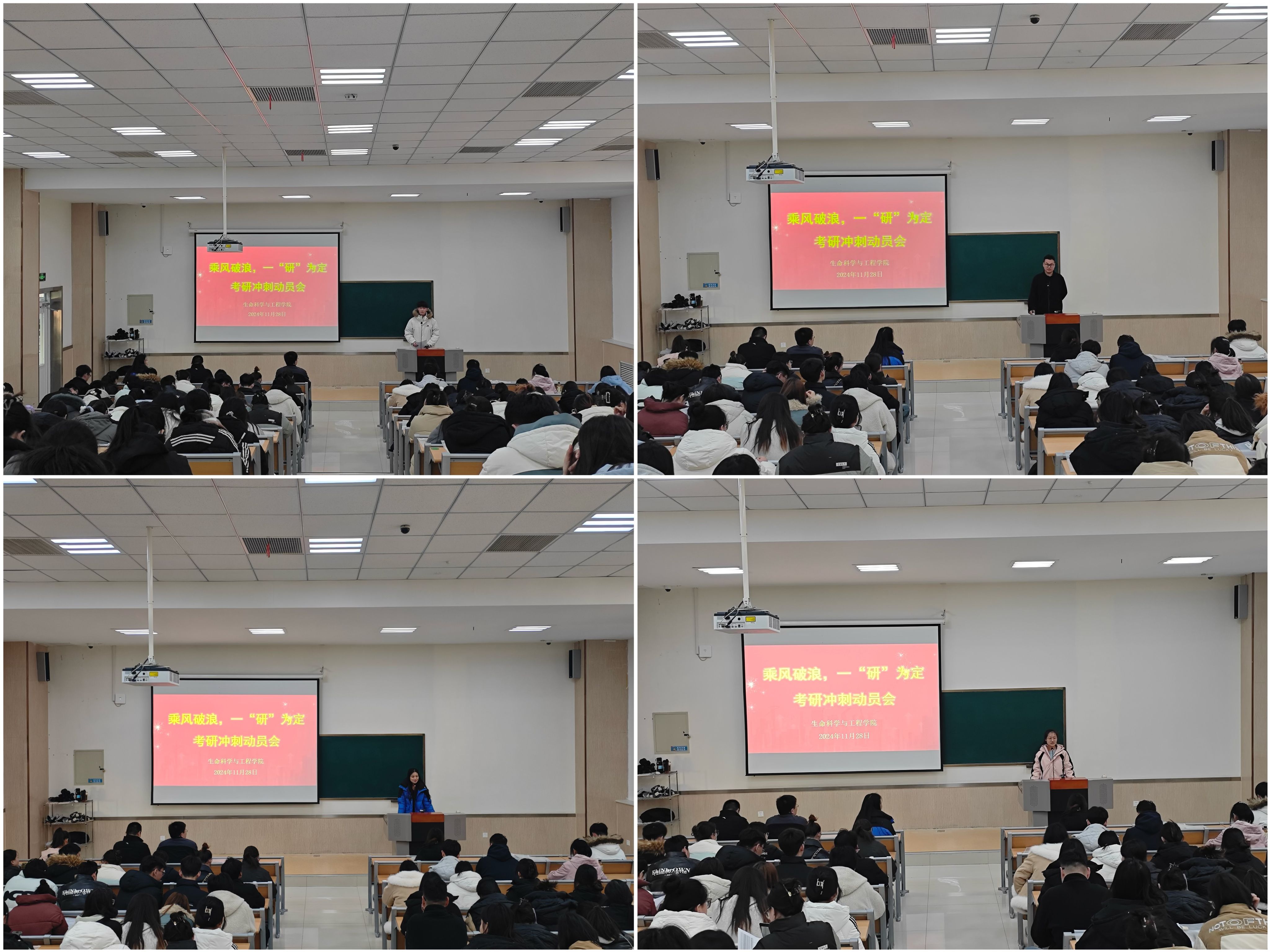 11月28日,生命科学与工程学院在曲阜校区、应用型人才培养基地举办“乘风破浪,一‘研’为定”考研冲刺动员会,助力考研学子迎考备战。学院党委副书记刘开伟出席并讲话,全体毕业班辅导员和2025届考研学子参会。