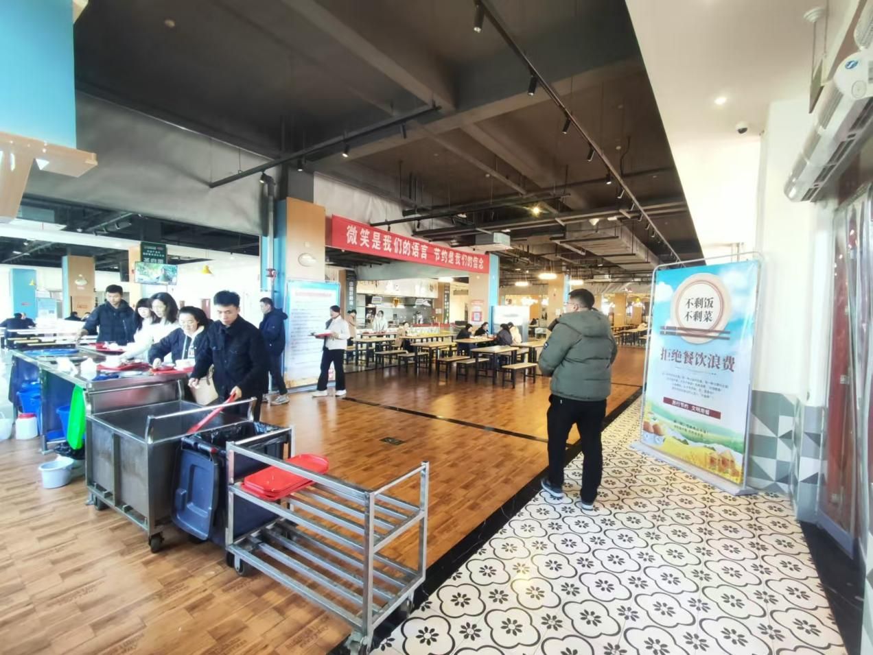 光盘行动,不负美好“食光”。食堂推出“小份菜”“半份饭”等,方便师生按需购餐;设立监督岗,加大食堂就餐、收残环节监督和提醒力度,对浪费行为及时劝导;加强运行管理,实现食材配比有效动态调整;提升从业人员技能水平,改进烹饪工艺,提高食品原料利用率,从原材料采购、存储、加工、售卖等环节深入融入爱粮节粮理念,最大限度减少损失和浪费。