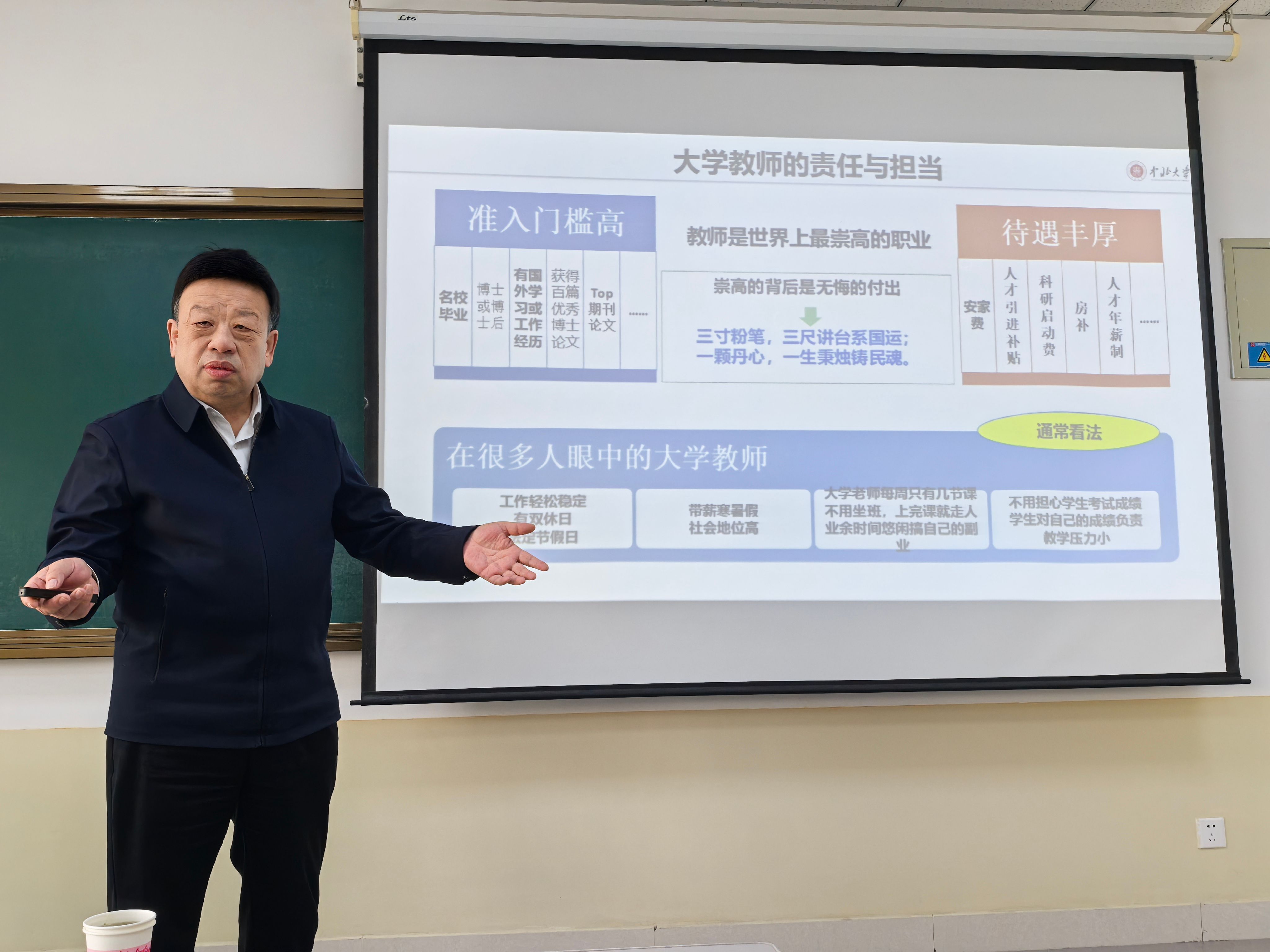 报告会上,刘有智围绕大学教师的责任与担当、化工发展历程及未来方向、化工课程教学、教师发展等方面进行了详细阐述,并通过生动的故事,对教师如何做到心中有爱,如何让教学成为一门艺术、如何增强专业自信、如何把教学科研两手抓提出了建议。