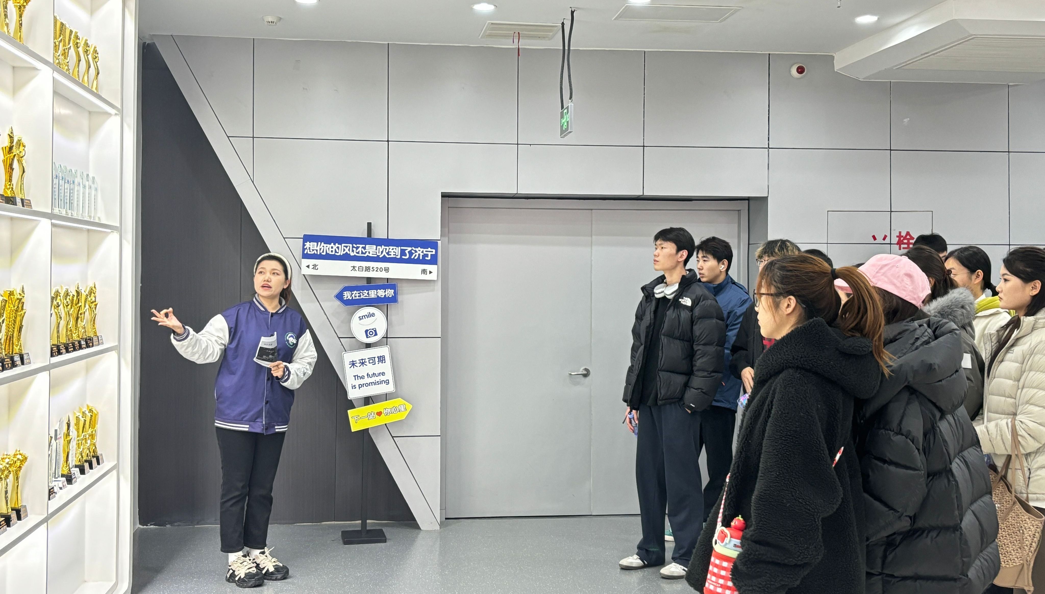 在校区负责人的带领下,音乐学院师生参观了山东蒲公英文化艺术发展有限公司苏宁校区和吾悦校区的声乐教室、舞蹈房、录音室等教学区,了解了该校的发展历程。在声乐课堂上,同学们观摩了教师的授课模式,与学员们进行互动,了解观看日常上课流程与基本课程的教学。4名毕业生作为企业代表介绍了公司的企业文化、发展理念、发展前景和晋升渠道等,并与同学们分享了自己毕业求职的经验。通过实地参观,同学们更加直观地感受到职场氛围,明确自己的职业规划,对本专业未来的就业充满期待。