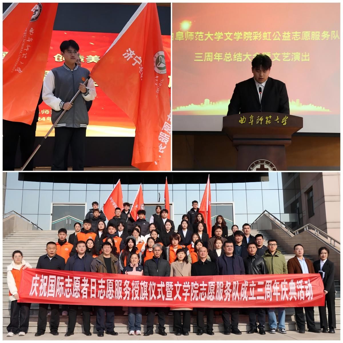 为链接驻曲高校志愿服务资源、搭建青年大学生社会实践平台,美术学院青年志愿者团队受邀参加了“曲阜高校志愿服务授旗仪式暨彩虹公益志愿服务队成立三周年庆典”,美术学院学生董昊获得授旗、曹力文代表发言,与会志愿者分享了志愿服务工作的心得感悟,畅谈了志愿服务工作的未来计划,共同进行了庄严宣誓,表达为志愿服务事业奋斗的决心和信念,实现了志愿服务力量由“小队伍”向“大网格”的转变。与此同时,志愿者受邀参加了“第三届中学教育教学高峰论坛暨新时代教育家精神研讨班”,积极地参与到会议的筹备、召开、收尾过程中,主动克服时间紧、任务重、环节多等困难,以严谨、高效、负责的志愿精神,保障会议圆满成功举办,获得了会议主办单位的高度认可与参会人员的一致好评。