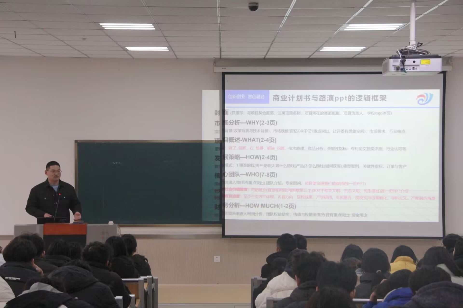 为进一步提升大学生的创新创业能力与实践水平,12月12日下午计算机科学与工程学院在8号楼203教室举行“青创大讲堂”讲座。本次讲座邀请2024年中国国际大学生创新大赛国赛银奖指导老师刘对和项目负责人王巍嵩主讲,近200名学生参加。