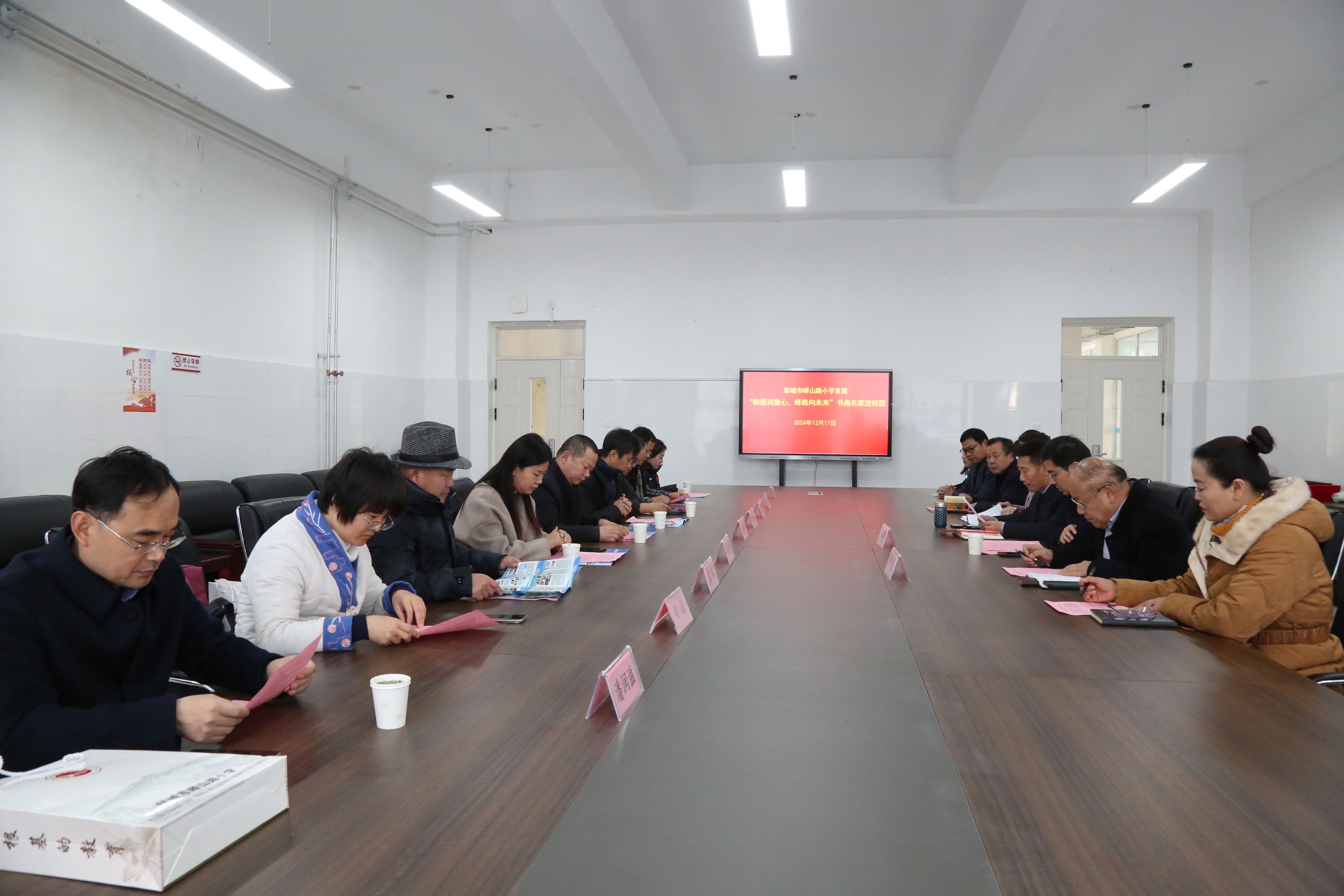 为进一步促进校地协同发展,强化美术学专业与中小学美术课程的深度融合与交流,推动教育资源的共享与互补,12月17日,美术学院院长张继华,学术副院长狄东占和美术学专业部分师生代表走进邹城市峄山路小学,参加首届“翰墨润童心、峄路向未来”济宁市书画名家进校园活动。邹城市教育和体育局党组成员、教育体育事业发展服务中心主任张永舸,峄山路小学党支部书记、校长伊长龙,峄山路小学领导班子成员和全体美术教师,邹城市美术家协会主席茹辉、曲阜市美术家协会主席冯培利等参加了此次活动。