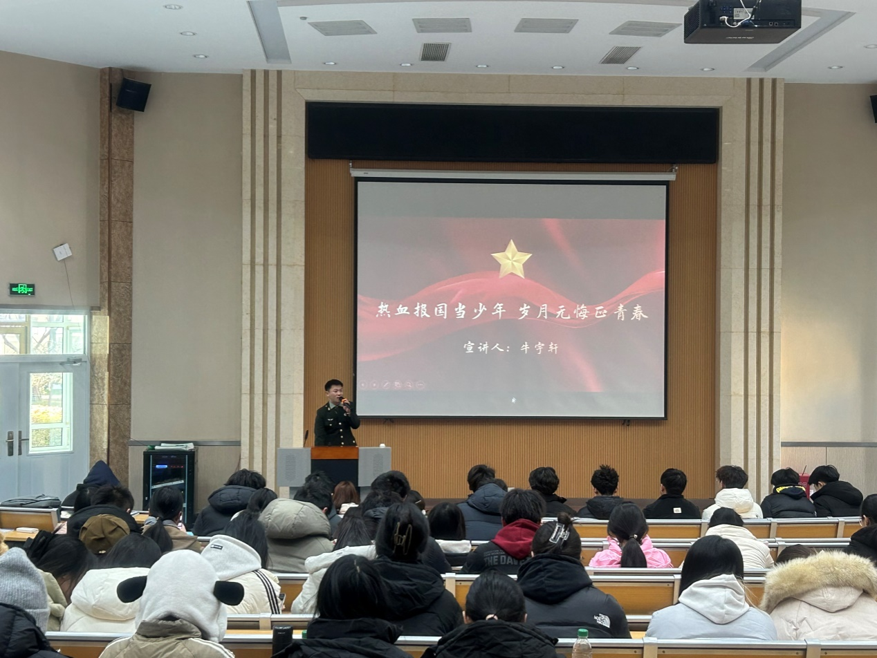 热血青春铸国防,参军报国正当时。为做好征兵宣传工作,营造浓厚的征兵氛围,激发同学们踊跃报名参军的热情,12月21日上午,计算机科学与工程学院在8号楼报告厅举办征兵宣讲会,本次活动特邀2022级计算机科学与技术专业退役士兵牛宇轩主讲,共计200余名在校生参加。