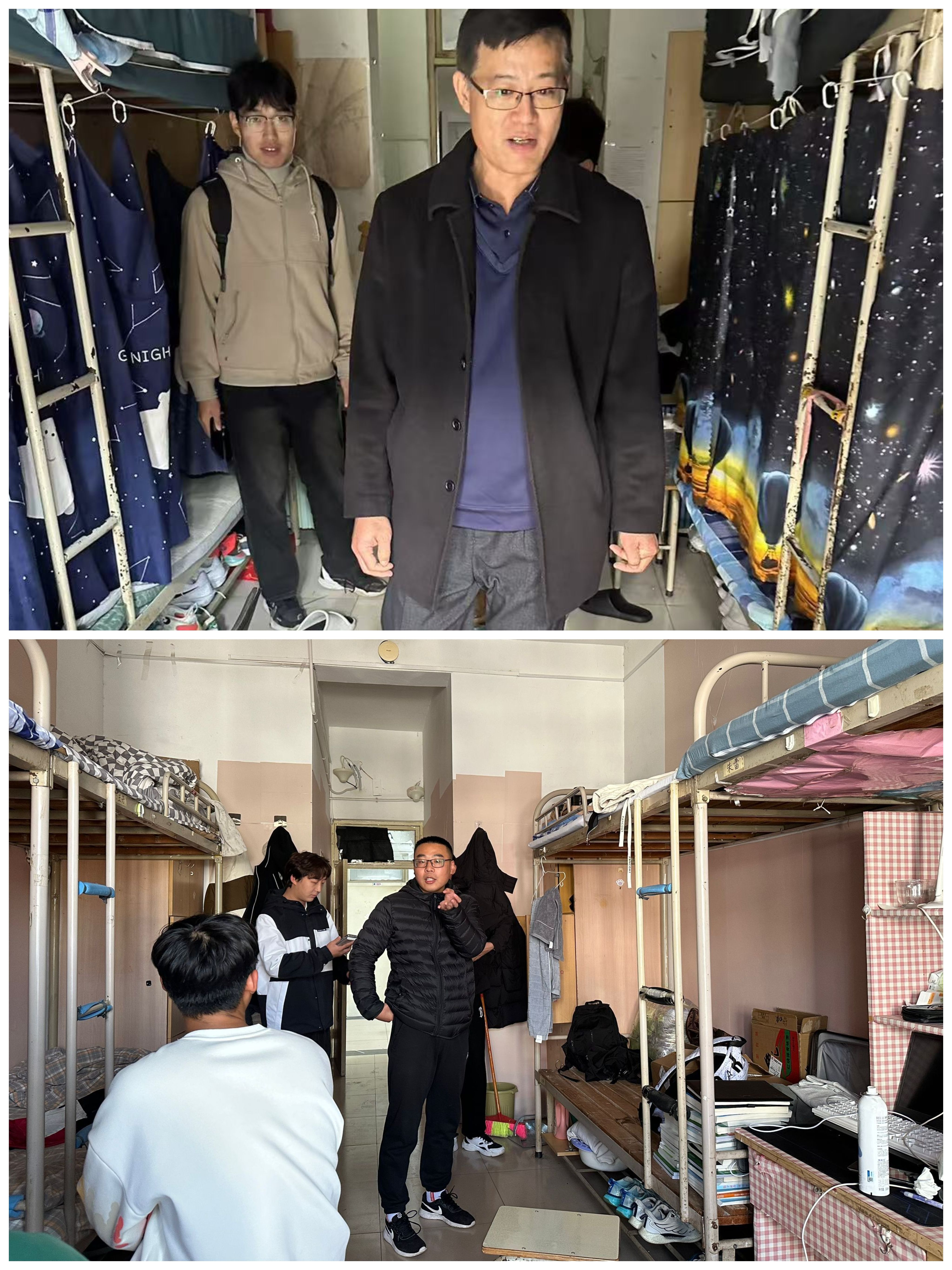 期末临近,学院领导与辅导员深入学生宿舍,全面了解学生的学习与生活状况。在强化宿舍防火、防盗、防诈骗等安全教育的同时,积极引导学生远离违规电器,防范火灾隐患与传销陷阱,全力保障学生的健康成长。