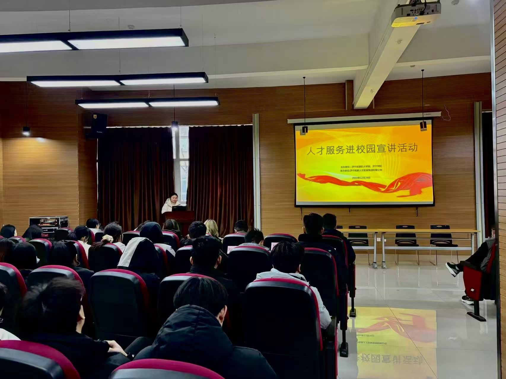宣讲会上,侯部长围绕济宁市高新区的就业创业政策和人才引进相关福利政策进行了全面讲解,详细介绍了求职创业补贴、创业贷款、税收减免、就业指导服务等,使同学们对高新区就业创业政策有了更加清晰的认识。随后,参会企业宣讲人先后从企业文化、主营业务、薪酬福利、业务培训、晋升发展等方面进行介绍。